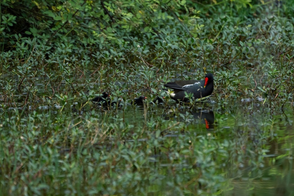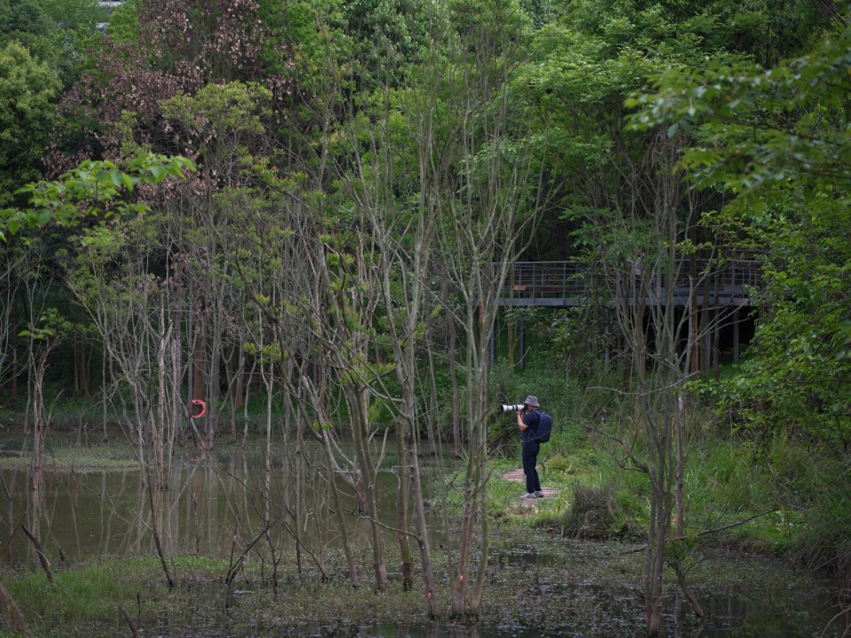 The entire wetland unfolds into a vast and tranquil habitat, where common moorhens roam the shallows, mallards gather in groups, and little grebes dive underwater before quickly resurfacing. There are also many golden-headed cichlids swimming beneath the surface. This has attracted numerous birdwatchers, making it a quiet yet lively observation point.
