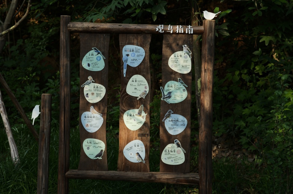 沿途,我们将导视与标识系统巧妙嵌入木结构之中,使其在传达必要信息的同时,融于整体自然氛围,不造成干扰,又能与自然观察和科普教育活动相结合。这种无形的生态知识传播,使得麓野逐渐转化为一座生动的自然课堂,直观地展示城市绿地中的生物多样性保护实践,并潜移默化地传递着保护自然的深远意义。