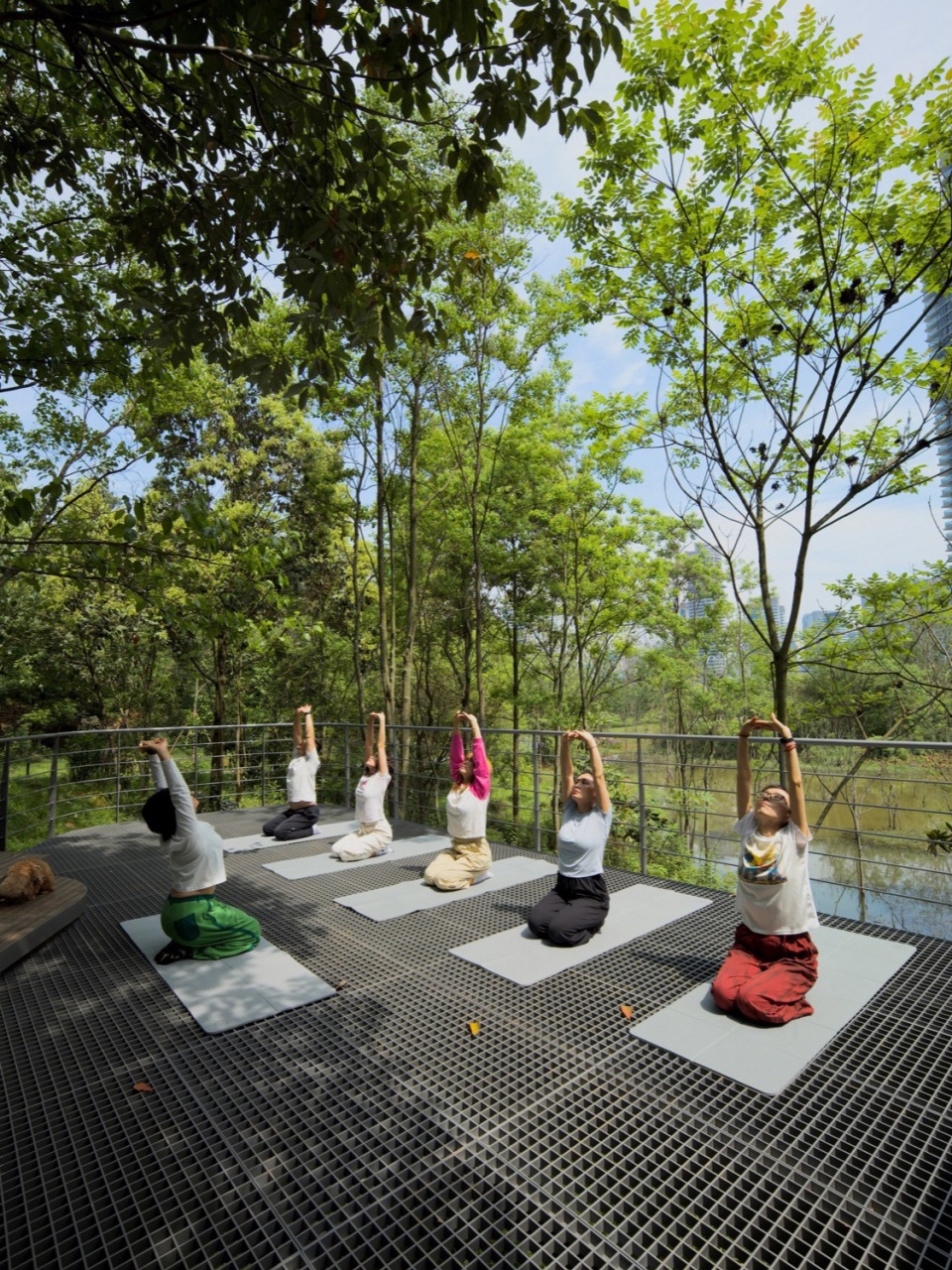 山林优势还带来天然的疗愈力量,无需远行,花上二十分钟或者更长的时间,就可以在森林中冥想静修,创作大地曼陀罗,聆听音疗颂钵的回响,或缓缓舒展一场运动瑜伽,让身体与自然同步呼吸。