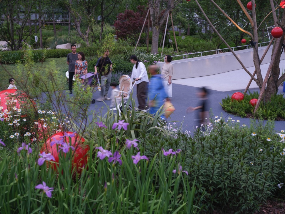In the broader natural contact area, the terrain undulates and the valleys stretch, creating an increasingly relaxed and free space. Children run on the grass, the elderly stroll along gentle slopes, and small groups of neighbors sit casually. The park is no longer just a service space; it gradually integrates into the daily routines of nearby residents, becoming a part of their lives.