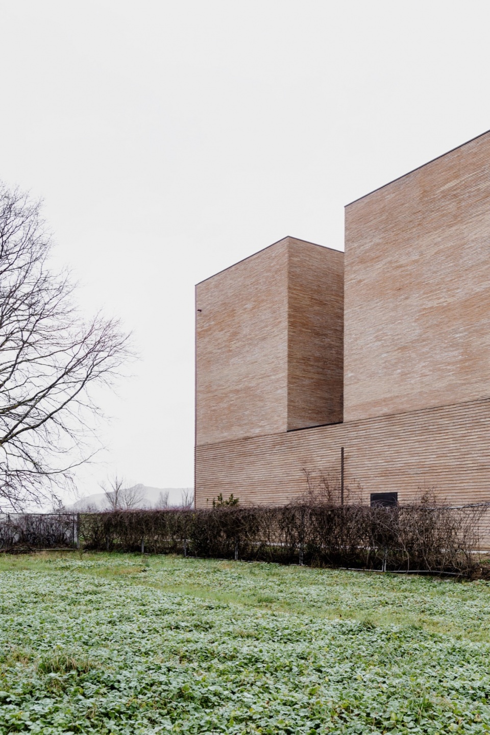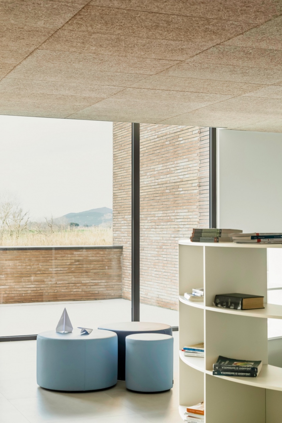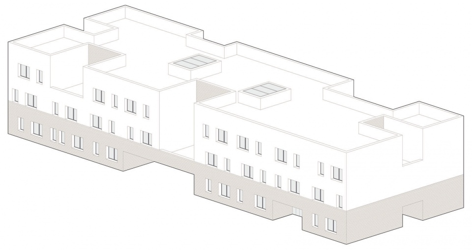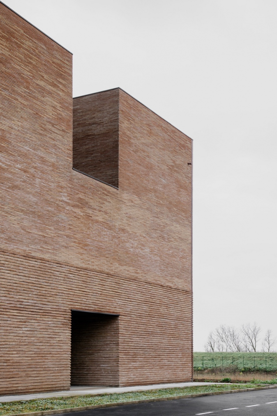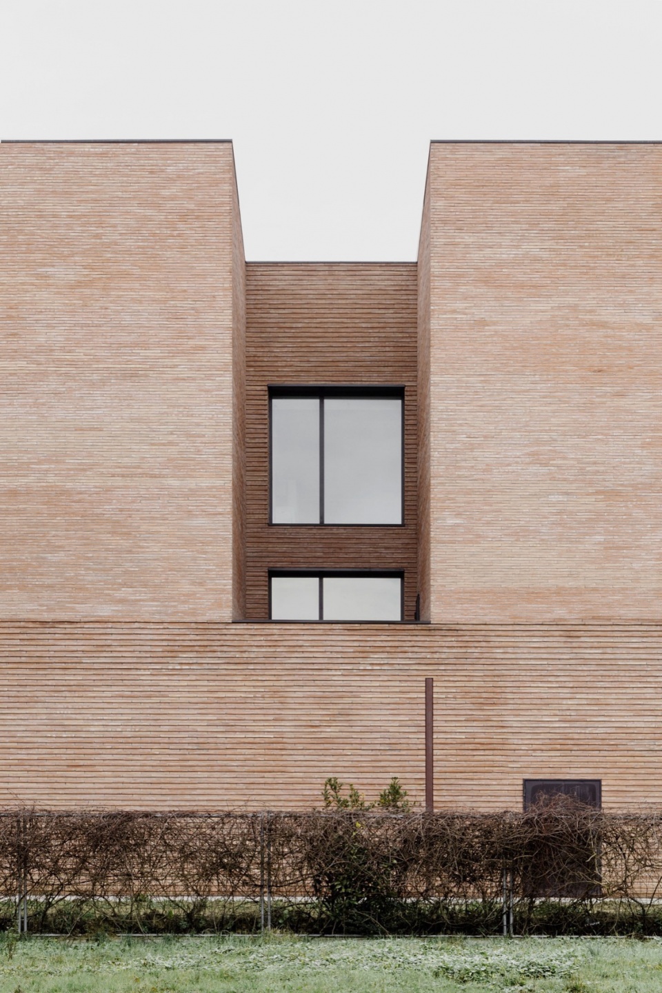 材料的选择亦是项目的关键之一。砖的运用源于设计团队希望与周边环境建立联系的愿望。砖作为一种连续且富有触感的元素,强化了建筑体量构成的表达,将平面布局上的变化清晰地转化为立体上的起伏。尽管建筑本身体量感强,但由于砖材具有手工质感——每块砖都独一无二、略有差异,整体呈现出生动丰富的细节层次。这种做法使建筑从远处看去显得厚重而整体,近观则可感受到其不规则表面所带来的光影与材质变化,增强了建筑的动态气质。