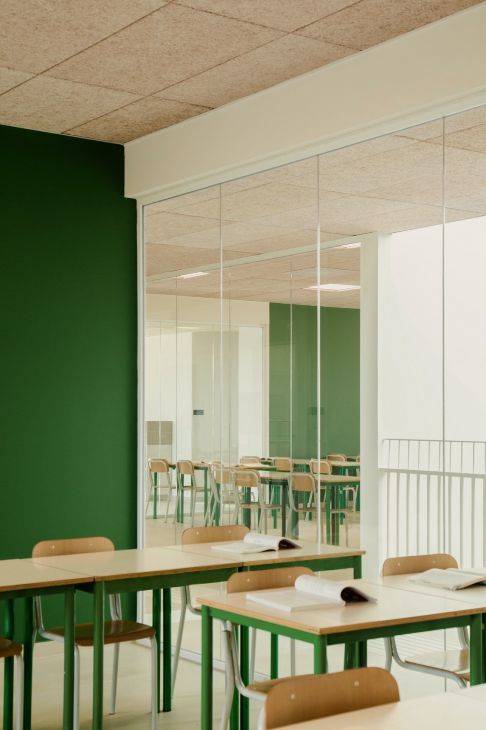 At the core of this concept is the principle of clusters-groupings of classrooms, laboratories, and communal areas organized by grade level. This system provides students with a broader and more dynamic environment than a single classroom, encouraging interaction and collaboration. Large glass partitions between spaces reduce physical and visual separation, making the building a shared place where knowledge extends beyond the boundaries of individual classrooms.