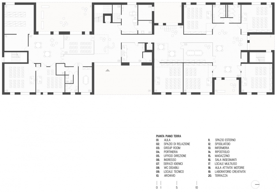 This material choice also serves as a metaphor for students* growth journey: like them, the school is imperfect and ever-changing, constantly evolving. The entire project is guided by a clear and coherent principle: to create a school environment capable of adapting to contemporary educational needs, offering flexible, stimulating, and inclusive spaces. Architecture thus becomes an educational tool, capable of welcoming. inspiring, and supporting students in their journey of growth-not only academically but also personally and socially.