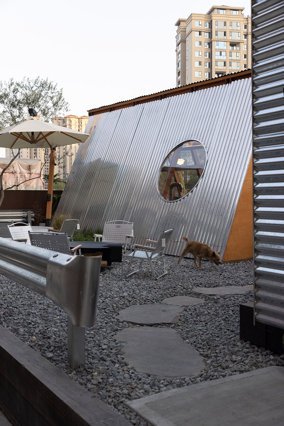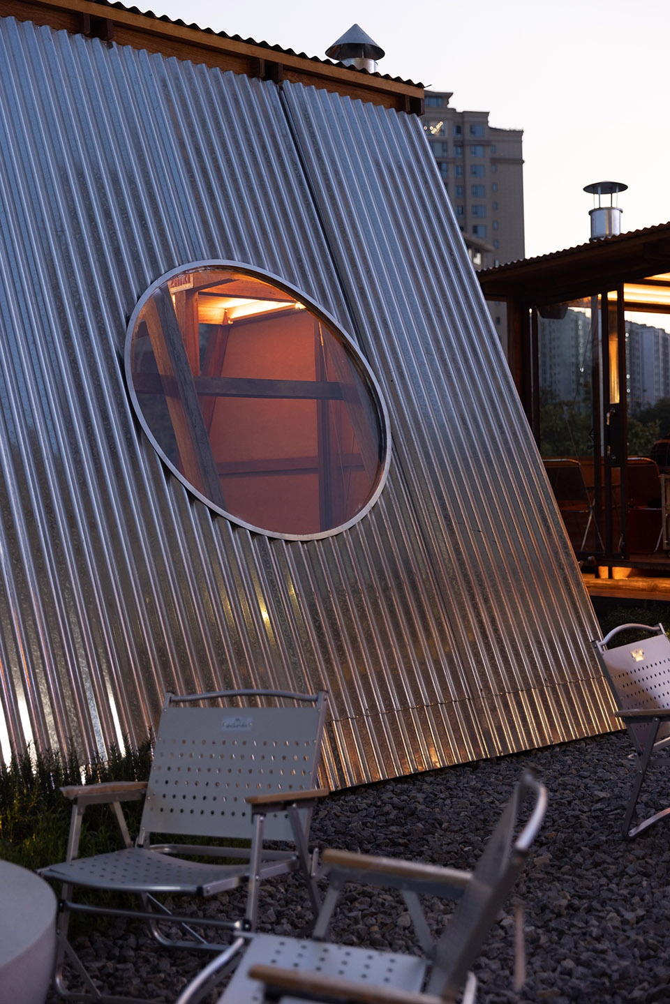 ▼外立面使用金属波浪板材质,the facade is made of metal corrugated panels