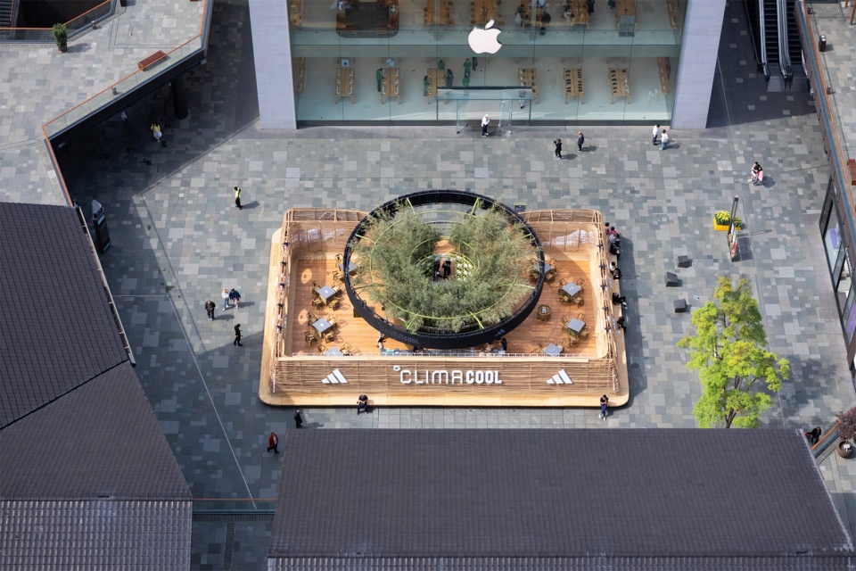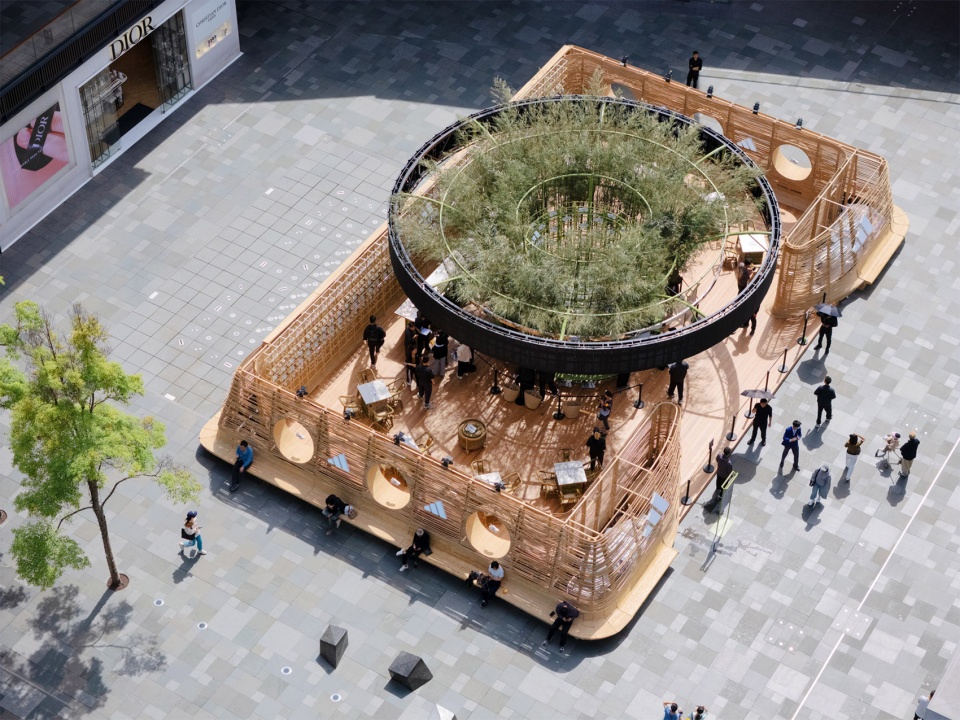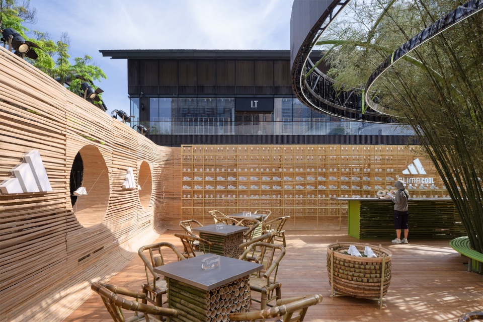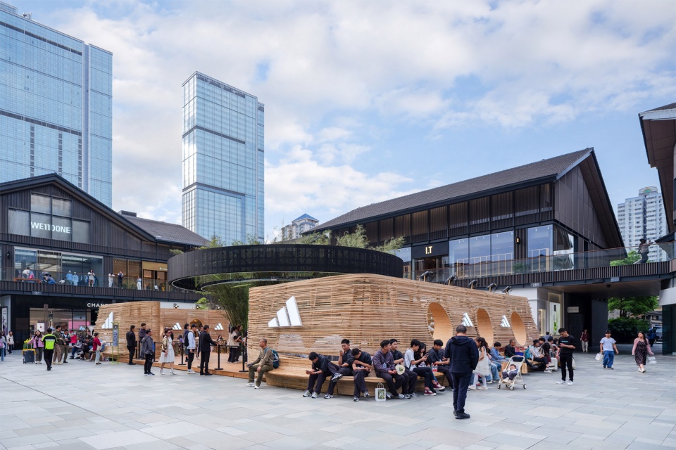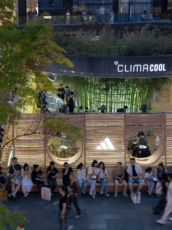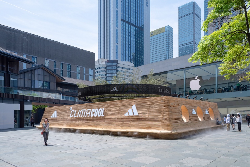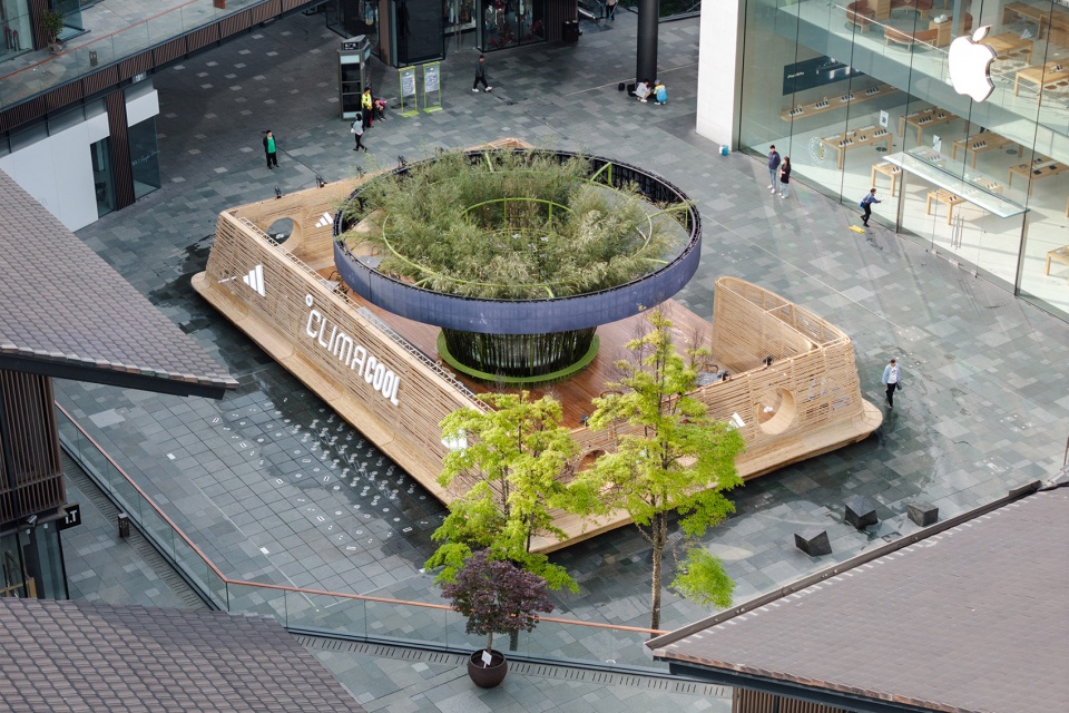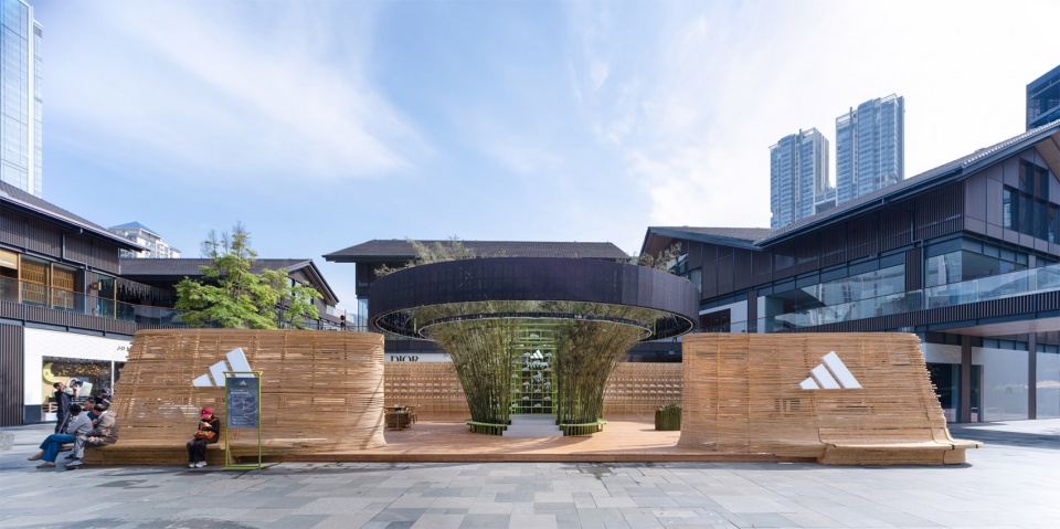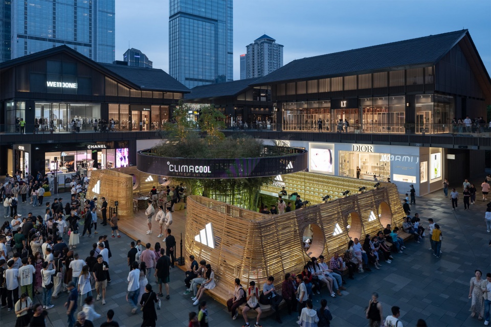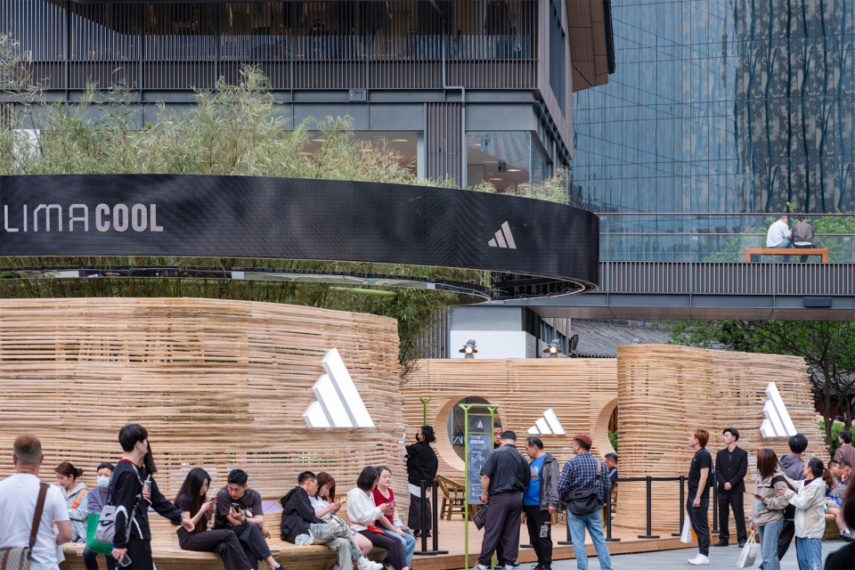 2025年五一,line+联合创始人、主持建筑师朱培栋在成都太古里,携手阿迪达斯及卓濡广告,共同展开了这次限时装置的命题挑战。装置以竹为媒,在茶馆的松弛感与快闪展厅的艺术性之间展开,以“清凉、呼吸、流动”为核心体验,呈现一次面向“体感变化”为主题的限时构筑实验。