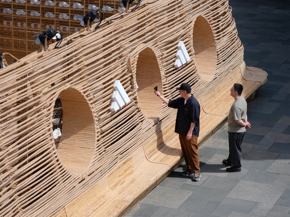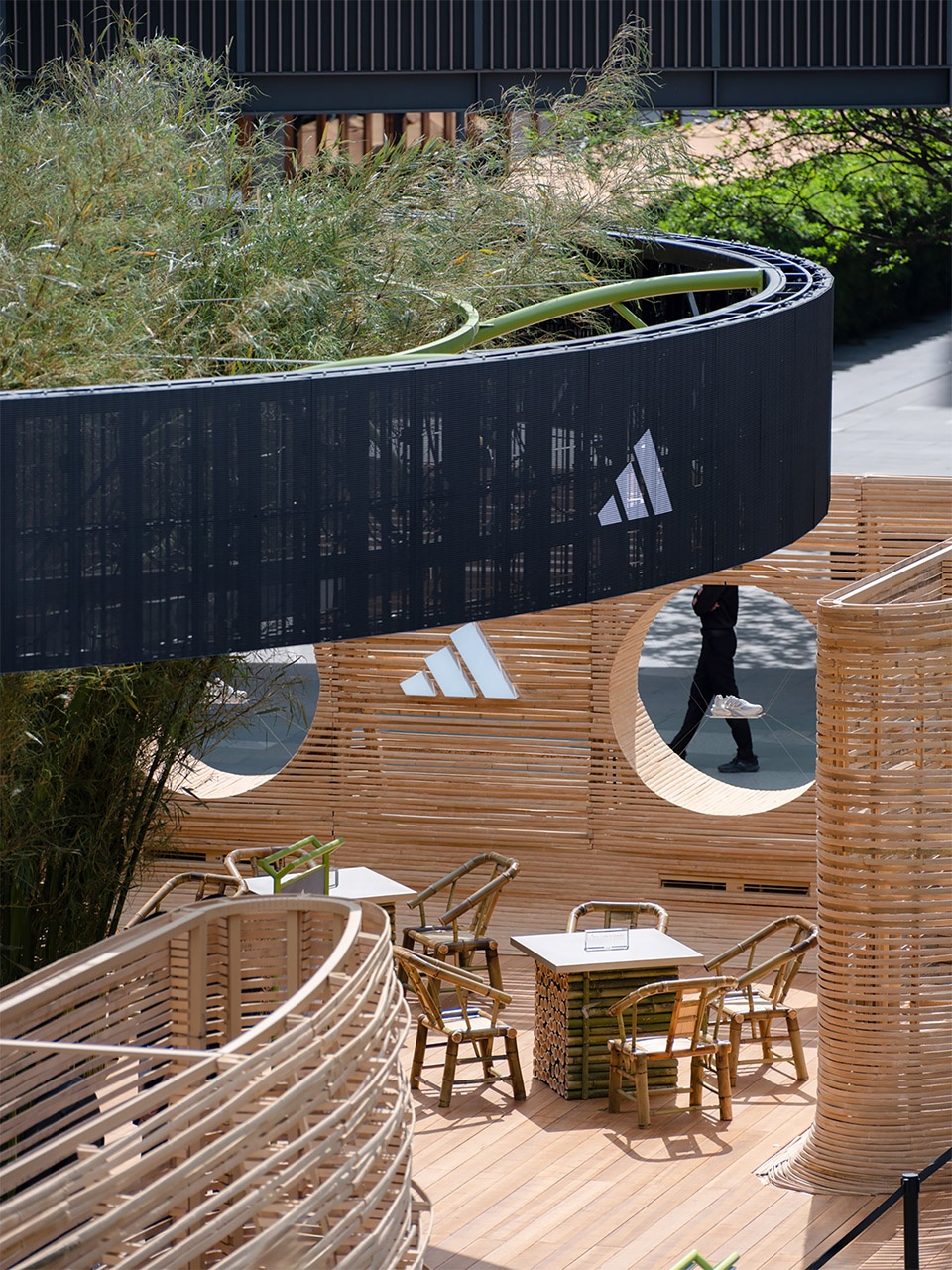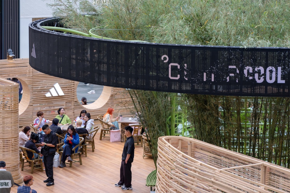 In May 2025, at Chengdu’s Taikoo Li, line+ co-founder and chief architect Zhu Peidong, joined forces with adidas and ZERO to launch a time-limited installation challenge at Chengdu Taikoo Li. Crafting bamboo as both medium and message, the project unfolded between the relaxed rhythm of a teahouse and the performative energy of a pop-up gallery. Framed by the core experiences of coolness, breath, and flow, the installation became a spatial experiment in sensory shifts.