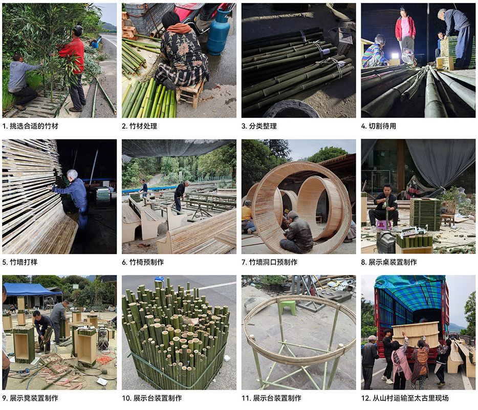▼在成都近郊山村完成竹质构件的预制作, Prefabrication of Bamboo Components Completed in a Mountain Village near Chengdu