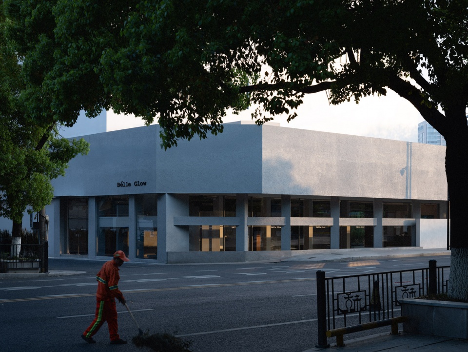 At No. 193 Hanghai Road, a compact white structure punctuates the northwestern edge of an otherwise mundane urban streetscape. As a pivotal adaptive reuse project, the original two-story podium has been reimagined as the Hangzhou flagship store for the multi-brand concept Bélle Glow, seamlessly integrating its revitalized identity into the city’s evolving fabric.
