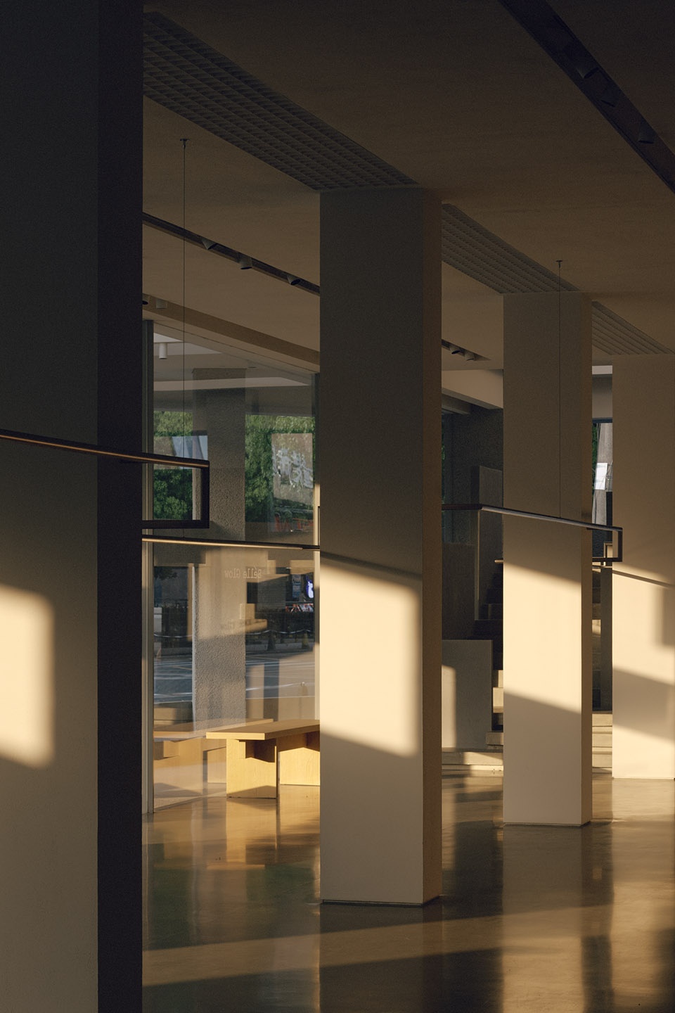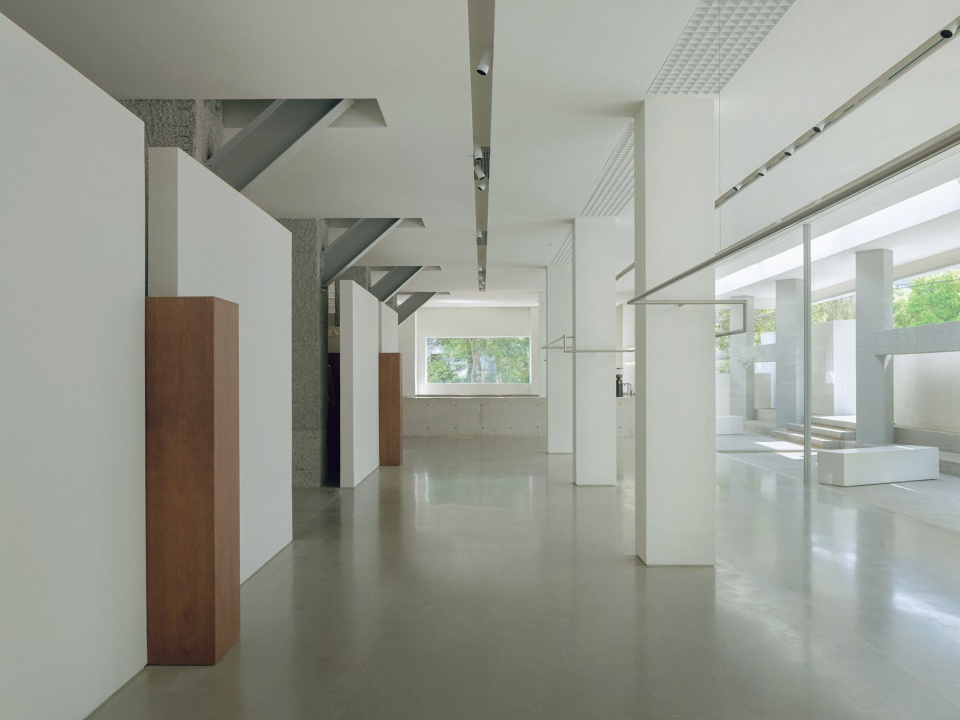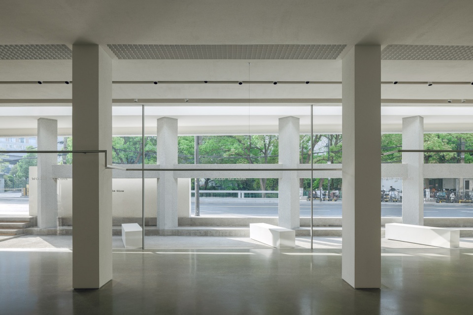 相邻的内侧柱体,则保留其原有的混凝土肌理,和立面白色矮墙、天花形体均保持距离,物与物的独立,让空气、视野能够自由流动。负责屋面承重作用的斜向支撑的工字钢,同样以序列排布的方式,展现工业的结构之美。二者作为场地的历史遗存,通过新与旧的对照、映衬,重获新生。
