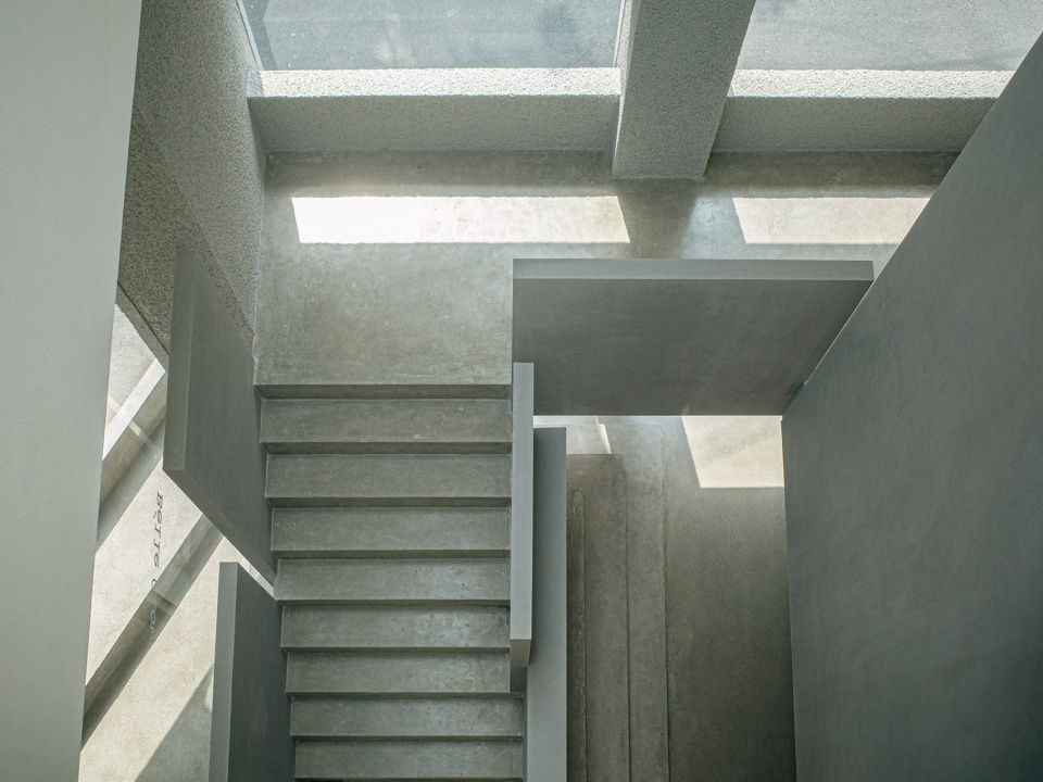 ▼楼梯如凝固的“雕塑”,staircase as a monolithic “sculpture.”