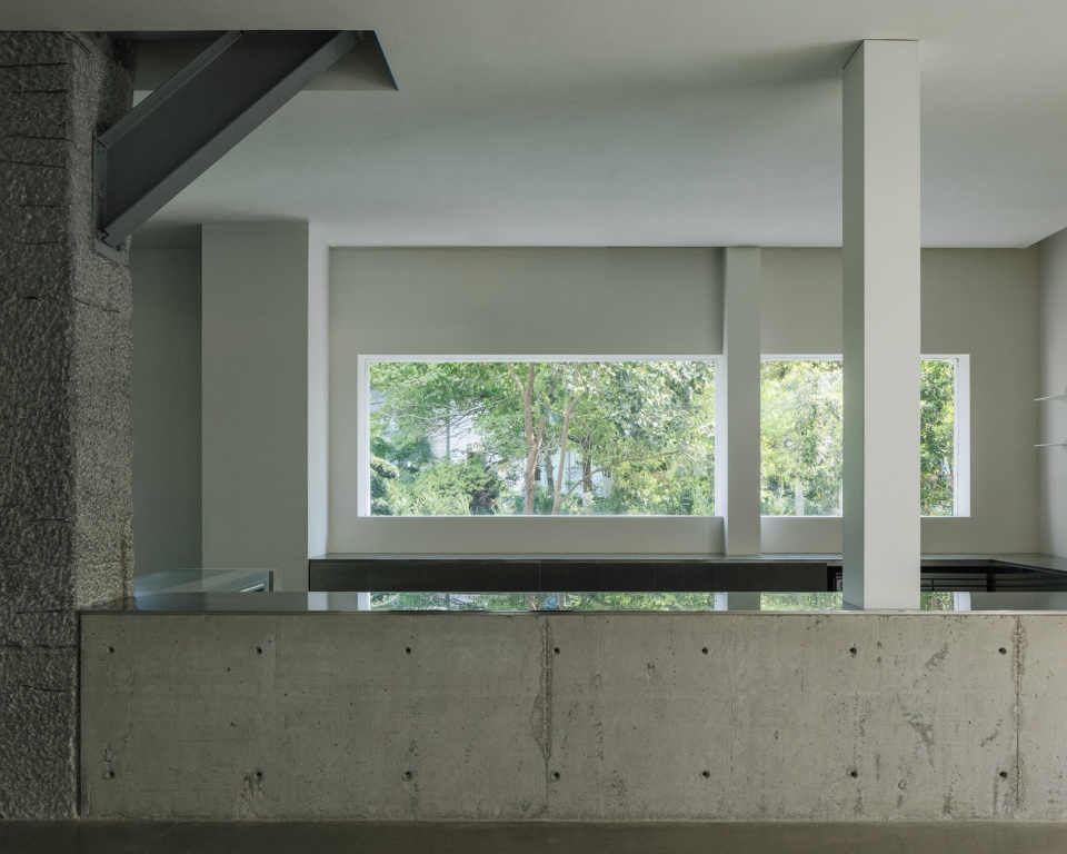 ▼保留原有的混凝土肌理的内侧柱体,adjacent interior columns retain their raw concrete finish