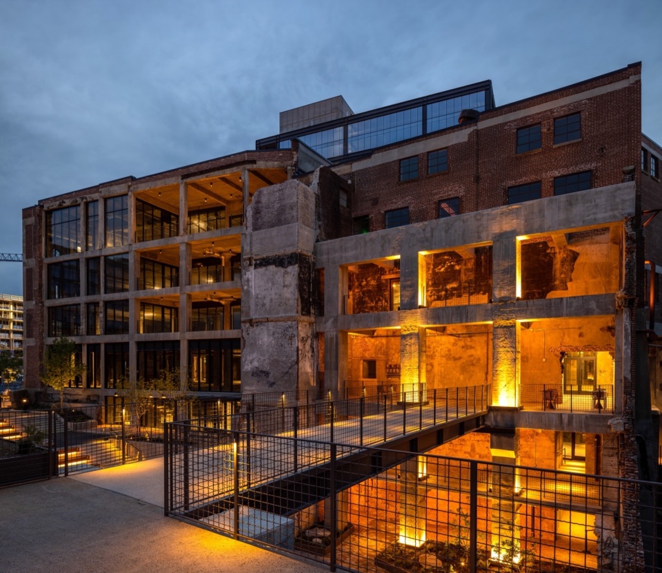 位于美国田纳西州纳什维尔市日耳曼敦的Neuhoff街区,是一个充满活力的微型社区,总建筑面积约为130万平方英尺,集办公、住宅、酒店与零售于一体。该项目以一座坐落于卡姆伯兰河悬崖之上的废弃屠宰场为核心,这座历史建筑已荒废五十余年,如今成为14英亩综合开发中的地标与中心。