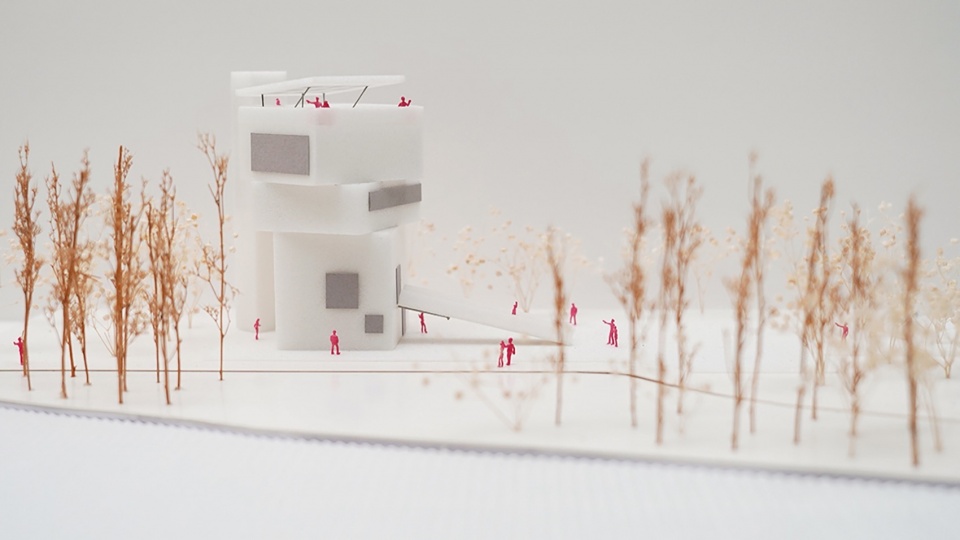 The observation tower is at the end of the transportation route as to the garden and also it is the midpoint of the tour, where the trestle bridge and lakeside trail meet. Usually, people would walk from the trestle bridge to the observation tower and then follow the lakeside trail back to the garden gate. Since the observation tower is given the function of a public building, it is not only a marking point to turn back, but also a resting place.