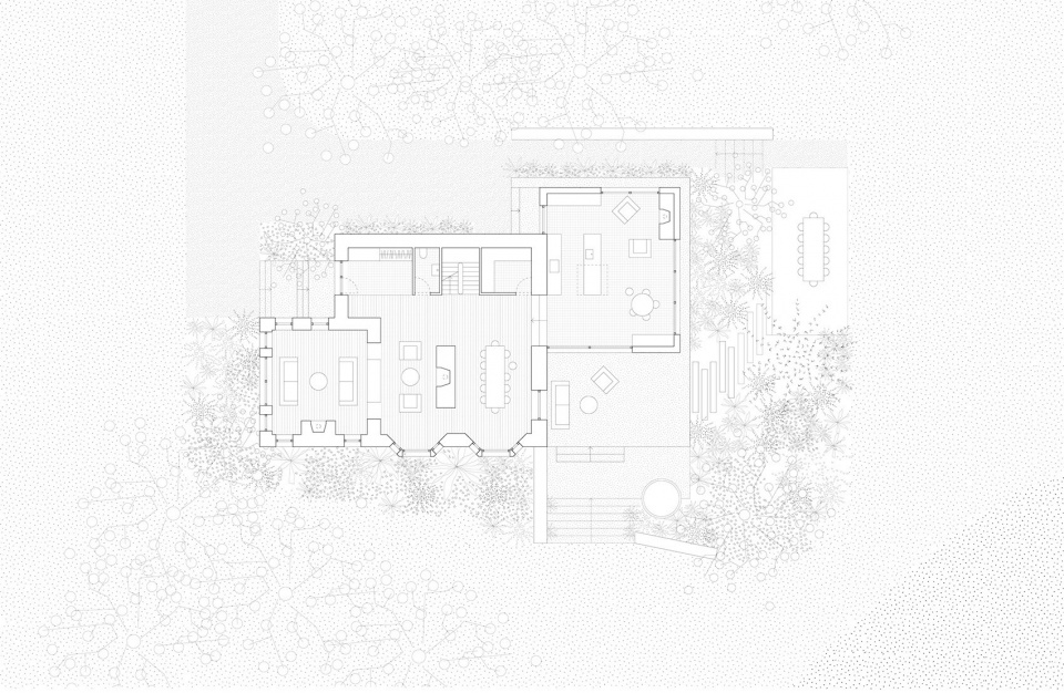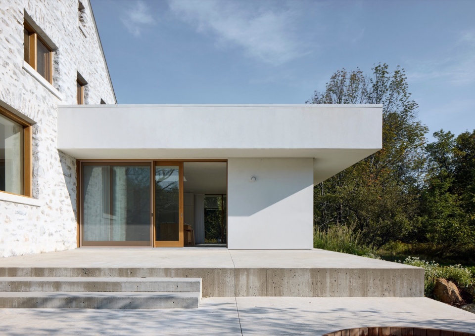 设计任务十分明确:在尽可能保留原有建筑与结构的基础上,彻底重组室内布局,提升热效能,并扩建一层空间,以更好地与周围自然景观建立联系。项目设计的核心理念是将三个不同时期的建筑结构融合为一个统一整体。与其采用鲜明对比的新旧语言,或试图模仿原建筑,设计团队更倾向于通过模糊而有机的对话,将新旧结合,借鉴原建筑的架构语言,塑造出既独特又连贯的建筑形式。项目通过在延续原有风格的同时引入清晰的当代元素,重新诠释了原建筑强烈的表达特质。