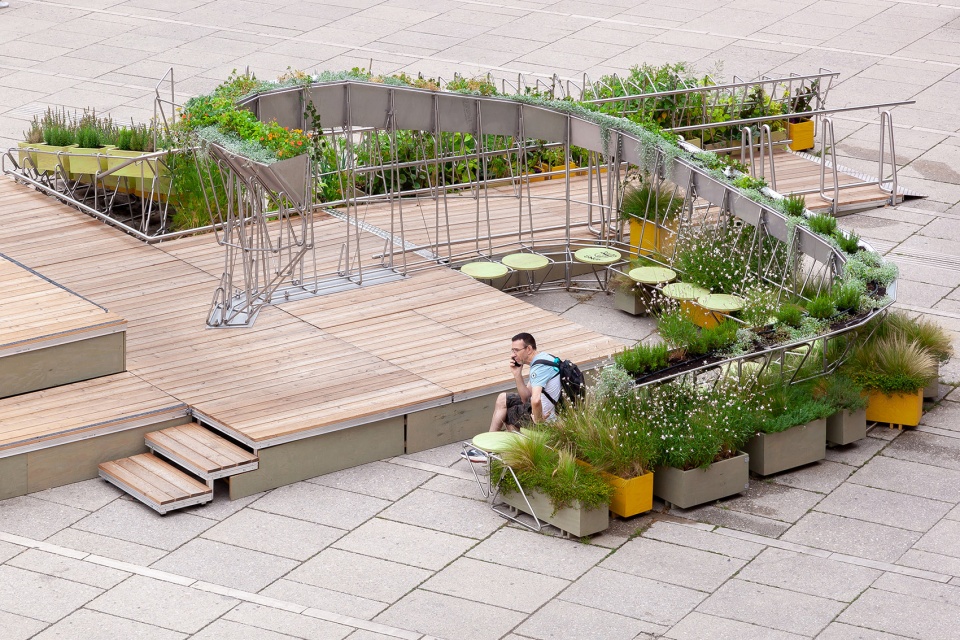 2.一片点缀着高草的“草甸”,为密集的城市环境带来一丝自然气息,营造出如同林中野餐般的闲适氛围。