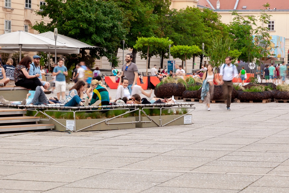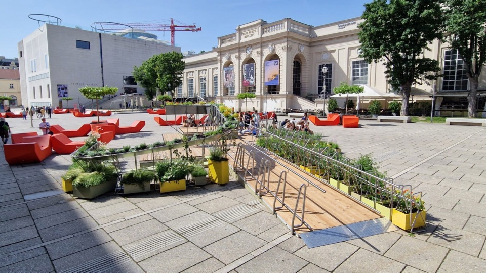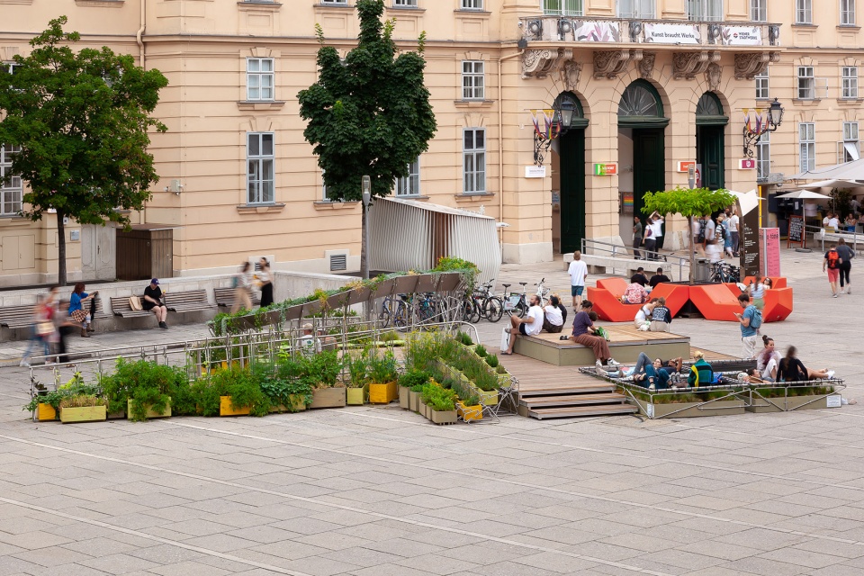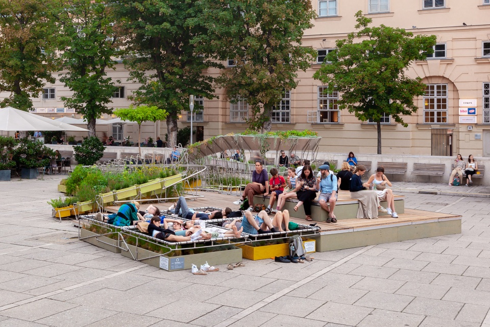 The stage, as a dynamic and diverse entity, serves as a platform for communication and artistic expression, constantly evolving to shape future values and content. Its design embraces continuous change in space and time, achieved through the harmonious integration of human, nature, and technology. The Sommerbühne, located in a prominent urban area, transcends its role as a mere representation and transforms into a space for encounters and relaxation, becoming a permanent fixture in the urban realm. Sustainability, in this context, is not only achieved through simplicity and discourse but also through the resonance of collective experiences on-site. To address the issue of hot surfaces during the summer season, the design emphasizes the introduction of a dense green vegetation, which activates the large patio originally made of sealed concrete.