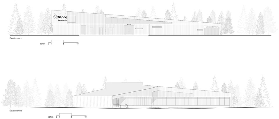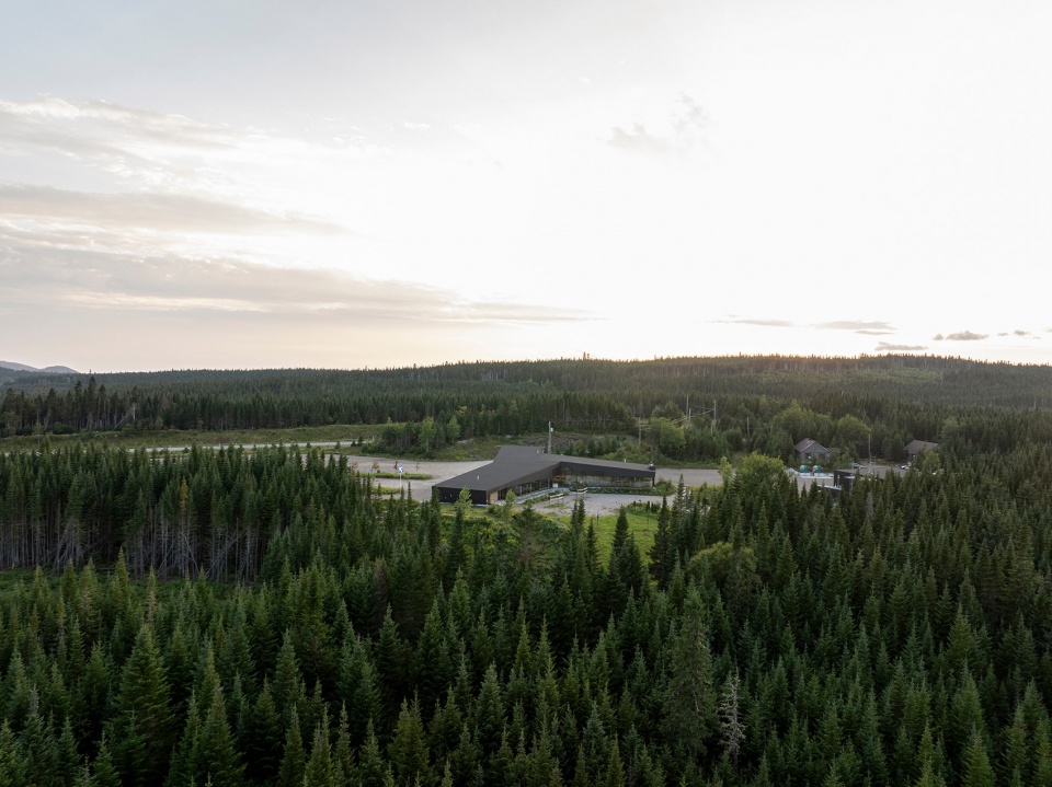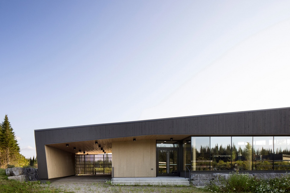 2018年,魁北克户外设施管理局(Société des établissements de plein air du Québec,简称SEPAQ)委托对现有接待馆进行评估,结果显示该建筑已到达其使用寿命的终点。随后,Anne Carrier建筑事务所受邀设计新的接待馆,以取代目前使用的旧森林营地,新建筑需具备功能性、耐久性和无障碍性。