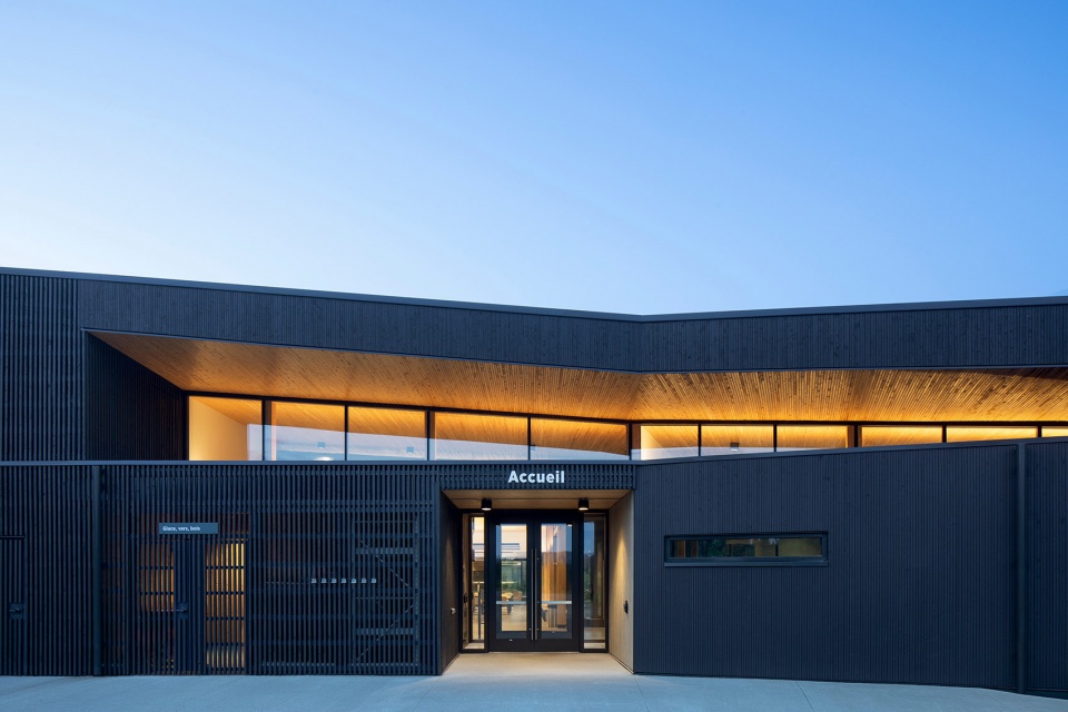 凭借对木材的精妙运用,项目荣获了2025年Cecobois卓越奖(Cecobois Award of Excellence)“机构建筑”类别奖项。评审团评价称:“这是一项采用整体方法的卓越作品。从融入地貌到施工细节,木材贯穿始终,各元素高度协作,构成了一个极具凝聚力的整体。工程木结构与轻型框架结构巧妙且合理地结合,最终呈现出一座线条清晰、与场地环境和室内氛围均高度契合的建筑。”