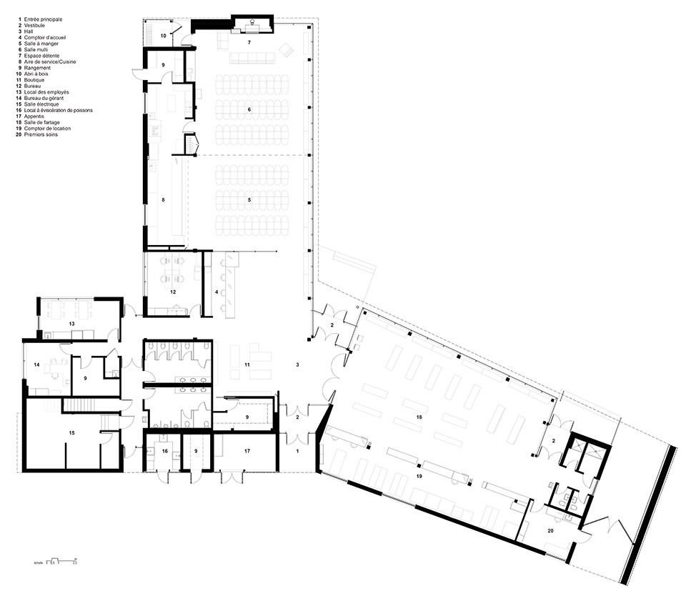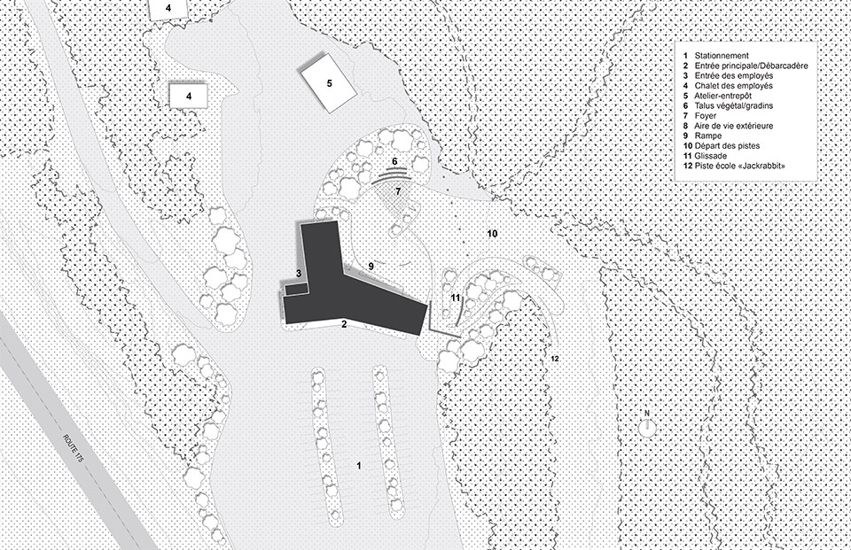 The building’s single-story layout easily allows universal accessibility, while minimizing noise pollution from the nearby road. The pavilion is integrated to the Laurentian Mountain landscape, and its efficient organization of living spaces and services in three wings with a central core optimizes circulation and operational fluidity, while offering a renewed experience to visitors throughout the year.