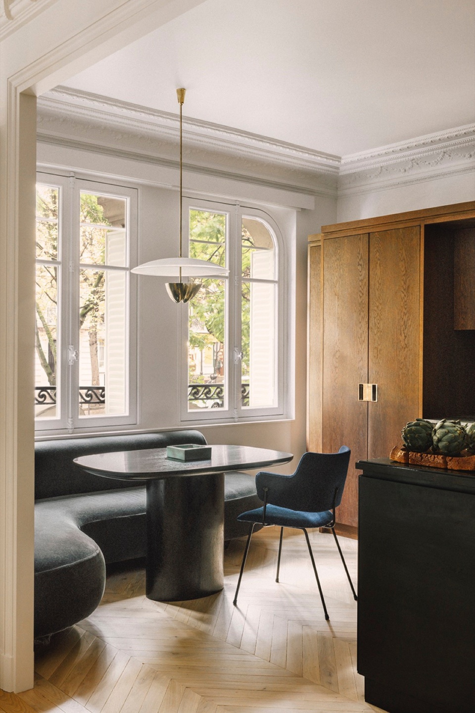 A stone’s throw from the Sacré Cœur, RMGB design duo Baptiste Rischmann and Guillaume Gibert have designed a family apartment for some discreet figures from the fashion world. After a few years abroad, their clients wanted to make a home with a typical Parisian aesthetic, while also representing their appetite for travel and their eclectic tastes.