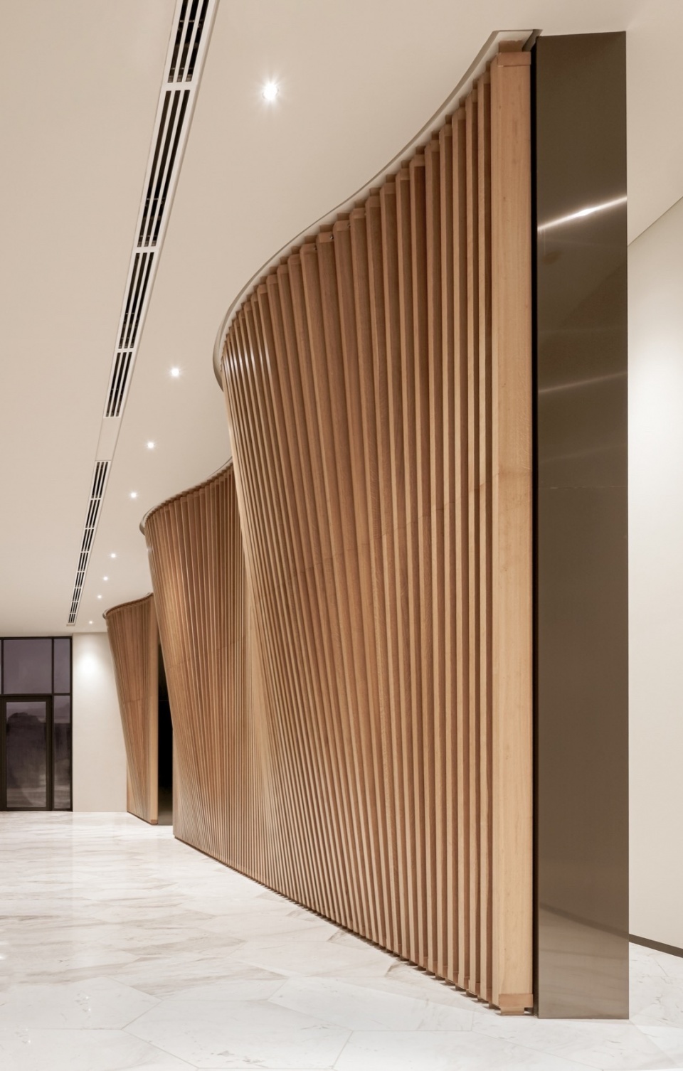 ▼波浪型的木制饰面墙,wavy wooden decorative wall