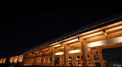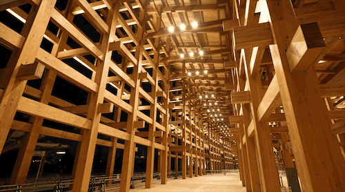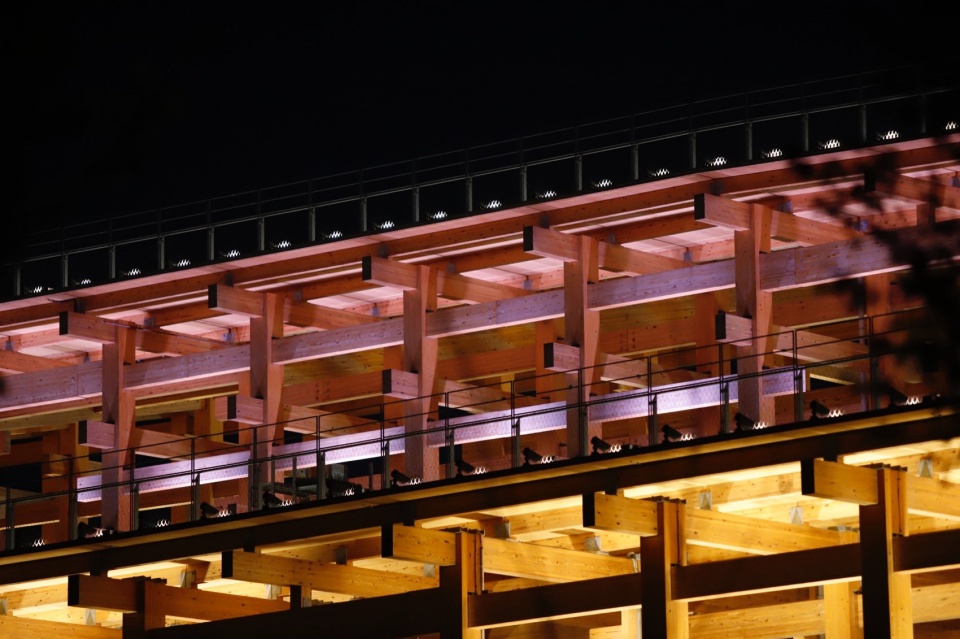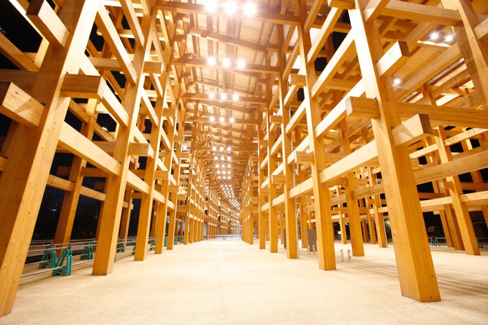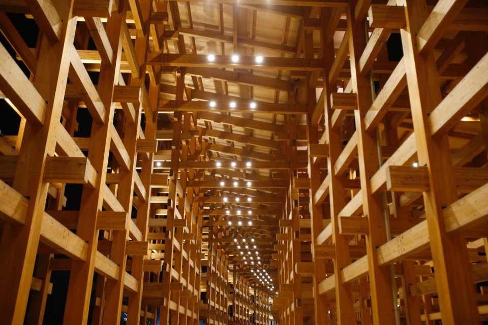 其建造融合了现代施工方法与传统的“贯木”工艺,这种工艺常用于日本神社和寺庙的建筑中。
