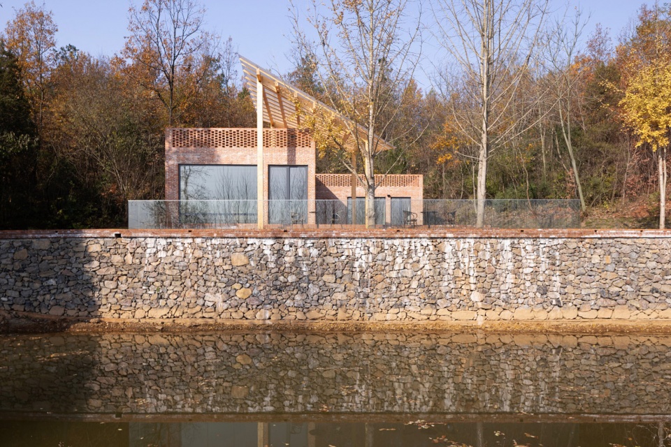 The Cycling Station is located in Yujiawan, Changgang Town, adjacent to the greenway loop. The site sits on a sloping terrain with a small pond to the south and is surrounded by bamboo and woodlands, offering rich natural scenery. Originally isolated by the pond and difficult to access, the site housed an old, severely deformed red-brick residence. After demolition, it was rebuilt into a cycling station providing services such as a Cafe House House, retail, bicycle repairs, and public restrooms for tourists and outdoor enthusiasts.