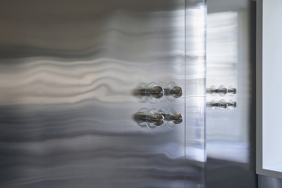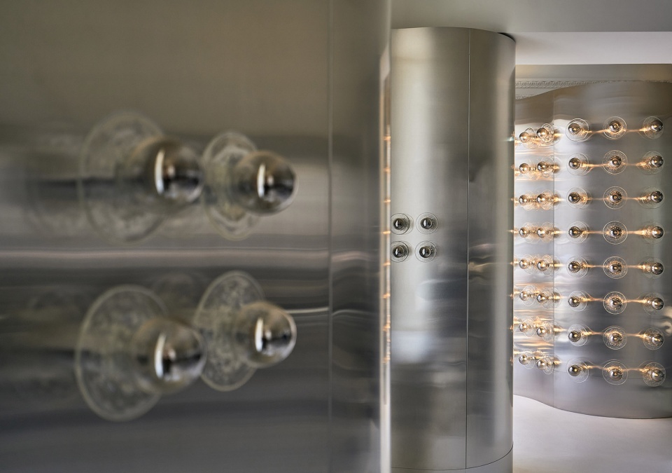 ▼将送风与排风管道巧妙地隐藏在墙面的金属波浪后方,