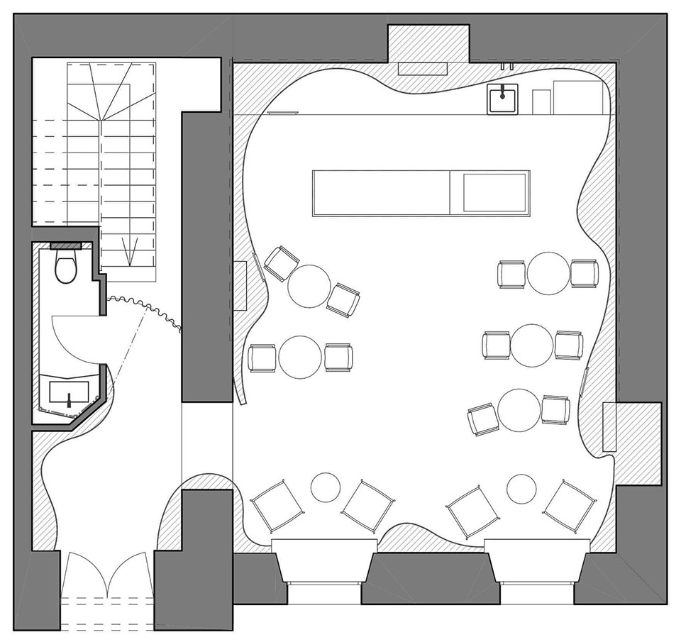 For a long time, we were looking for a simple solution, simple materials, and one clear idea that would create and unite the whole interior. We had a very tight deadline. As usually happens with commercial establishments, when you have to pay the rent and open quickly. So we wanted to find one common solution for the entire design, to implement the interior in collaboration with as few contractors as possible.