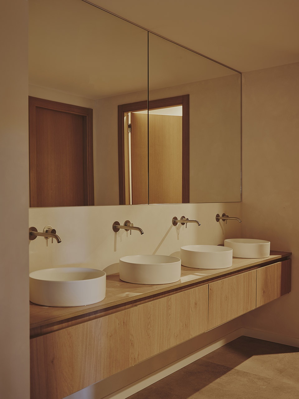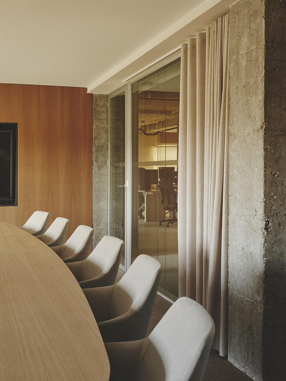 Meeting and executive rooms are located on the facade overlooking the gardens, which is the most visited area by the company’s clients, incorporating the reception and waiting area there as well.