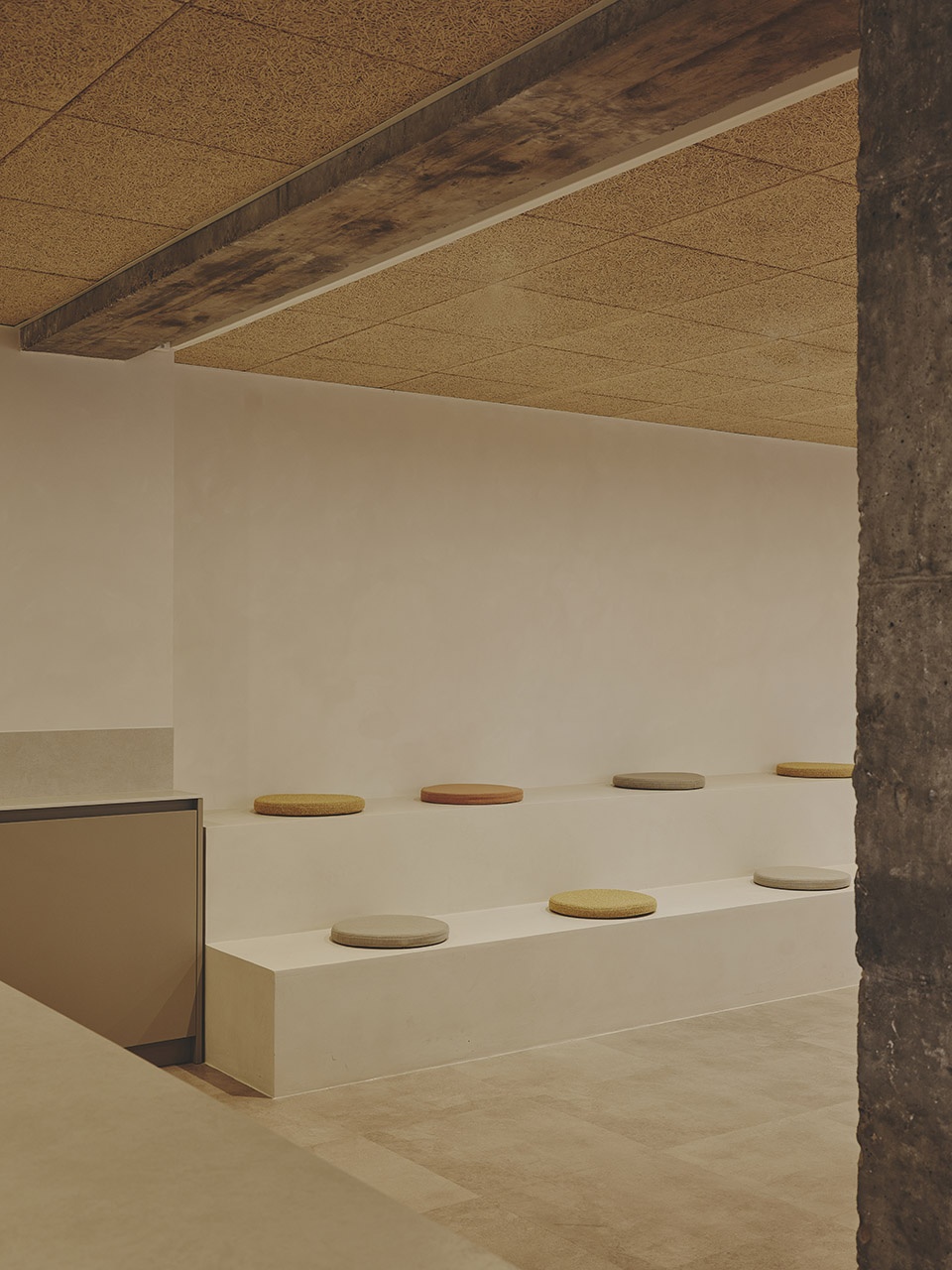 After carefully defining the client’s needs, it was decided to build tailored large working tables placed between the pillars, releasing the rest of the gaps to freely move around within the pillar forest.