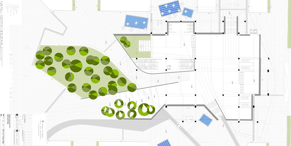 在“那不勒斯中央商务区车站(Centro Direzionale di Napoli)”的设计中,Benedetta Tagliabue及其EMBT事务所试图在城市的天然火山地貌与上世纪70年代由丹下健三(Kenzo Tange)设计的人造场地之间建立新的联系。