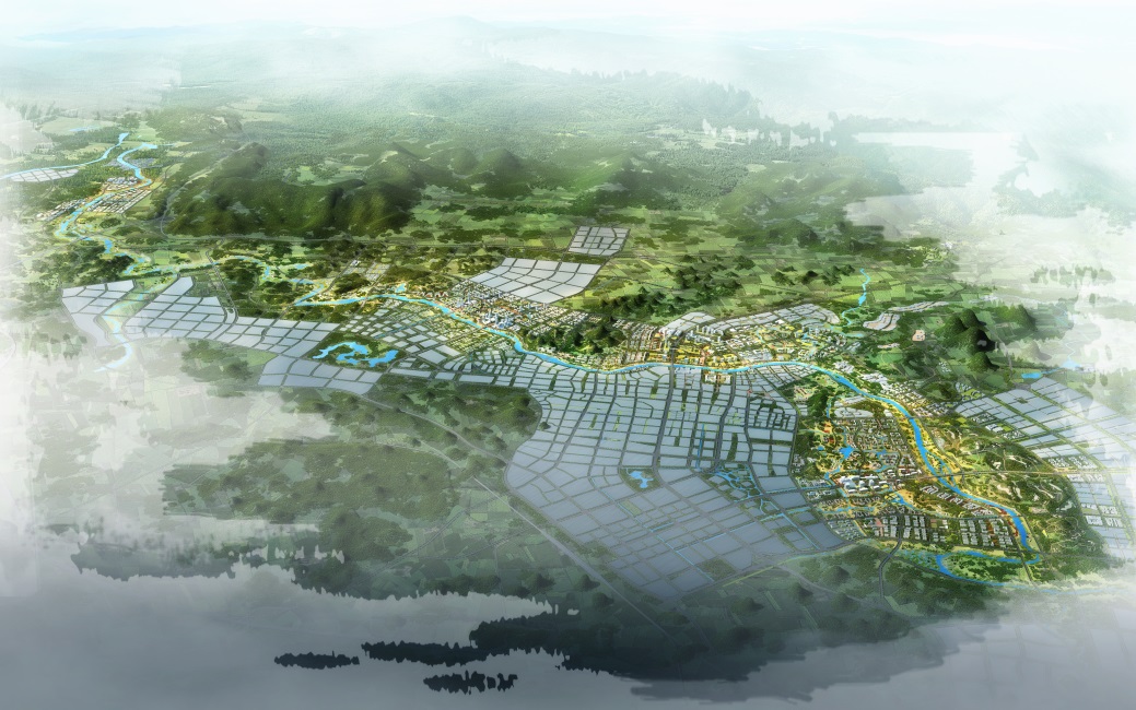 The landscape platform of Qushui Liancheng: with the He River as the core, build a "one horizontal and six vertical", with a watershed of 50 kilometers, and a green ecological system of Qushui Liancheng intertwined with city green.
