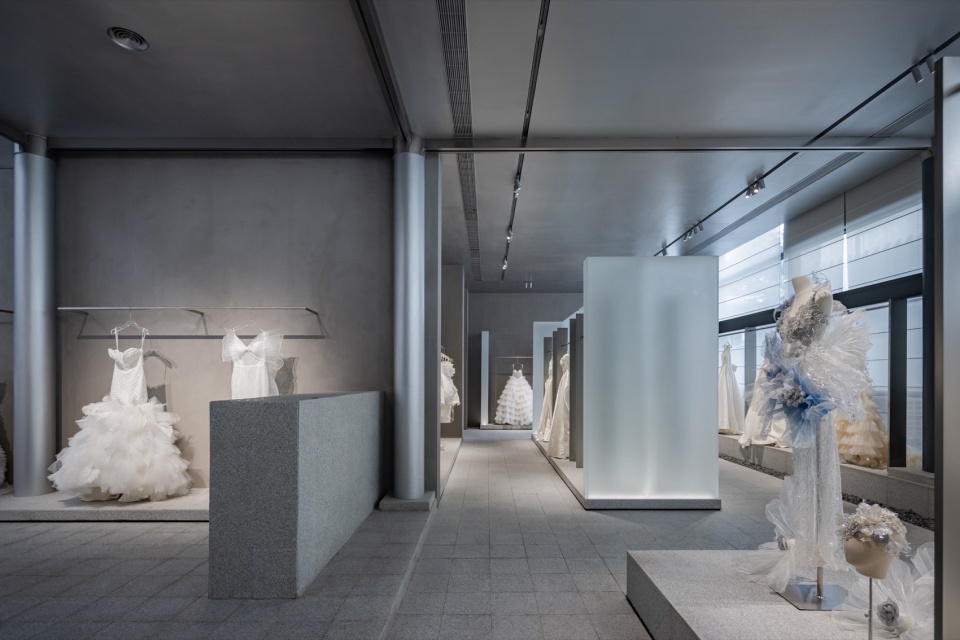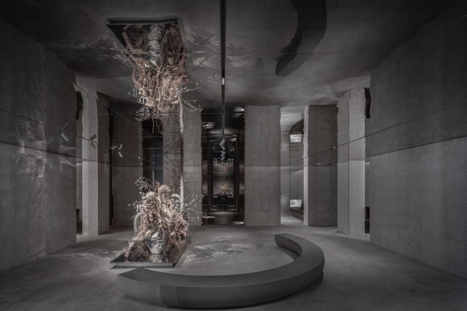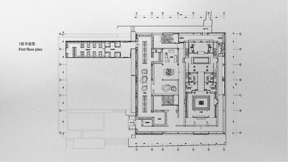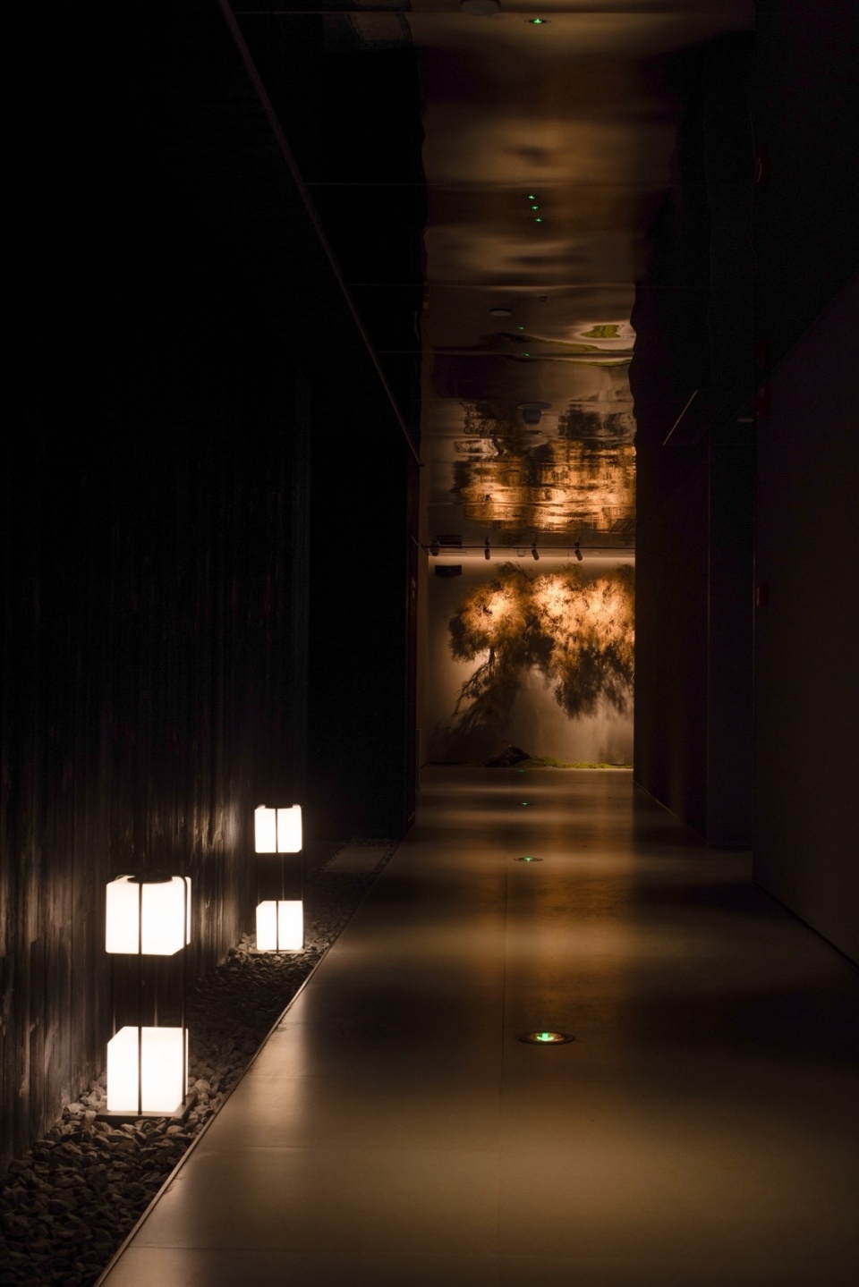 In commercial exhibition zones, low courtyard walls replace internal partitions. Light permeates through translucent screens, making classical/modern and reality/fantasy interplay within this art-grade exhibition space.