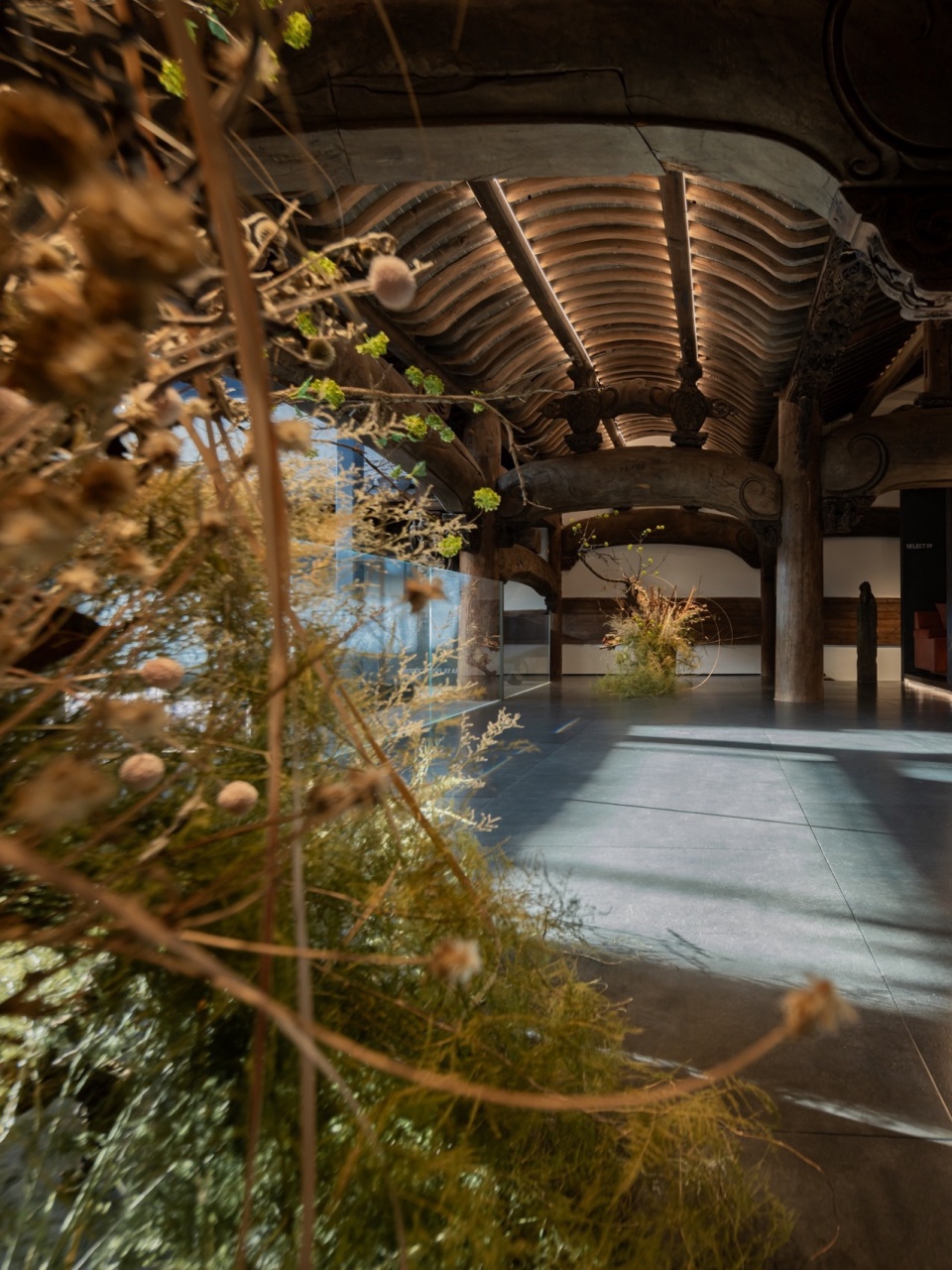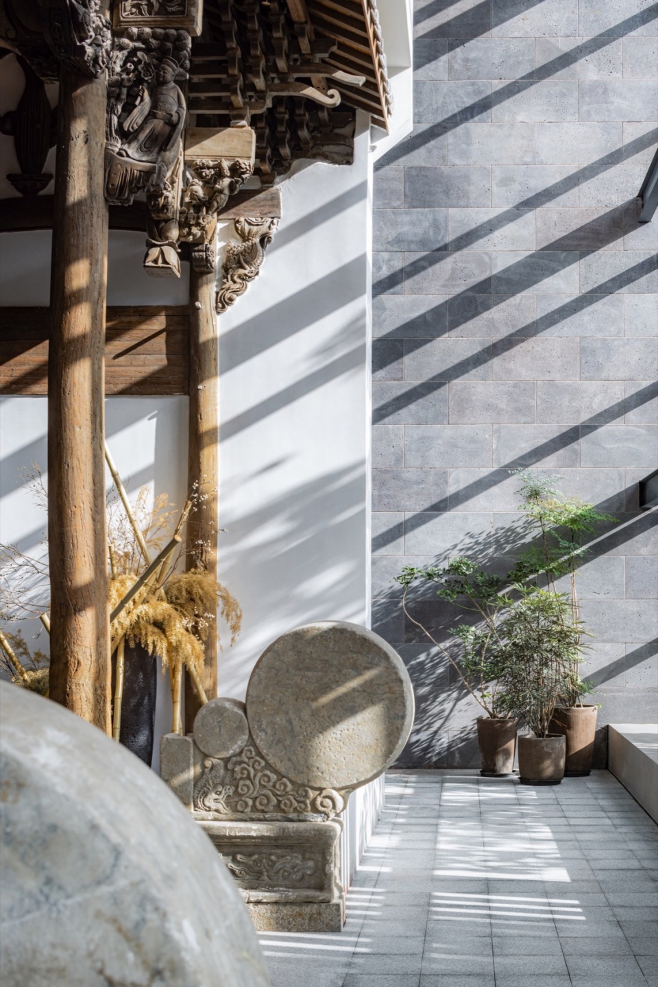肃穆感的砖墙和保留原始状态的木质结构,穿过时间的繁华起落,跨越千年沧桑气度,古建的生命有了更深刻与极致的诠释。现代与传统在此碰撞、互融,生出一场逾越千年,跨时代的对话。
