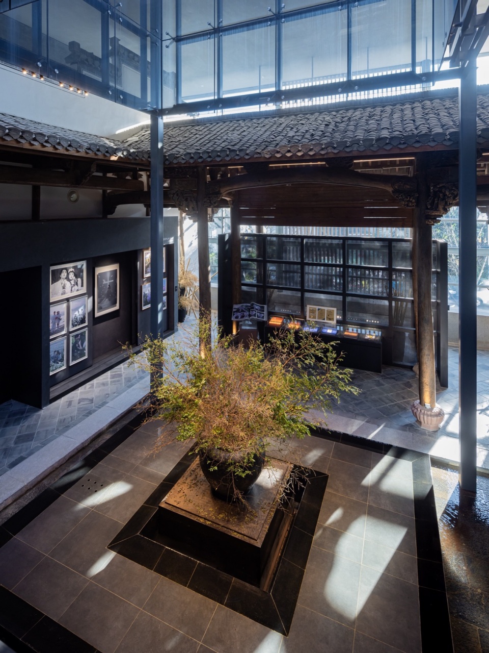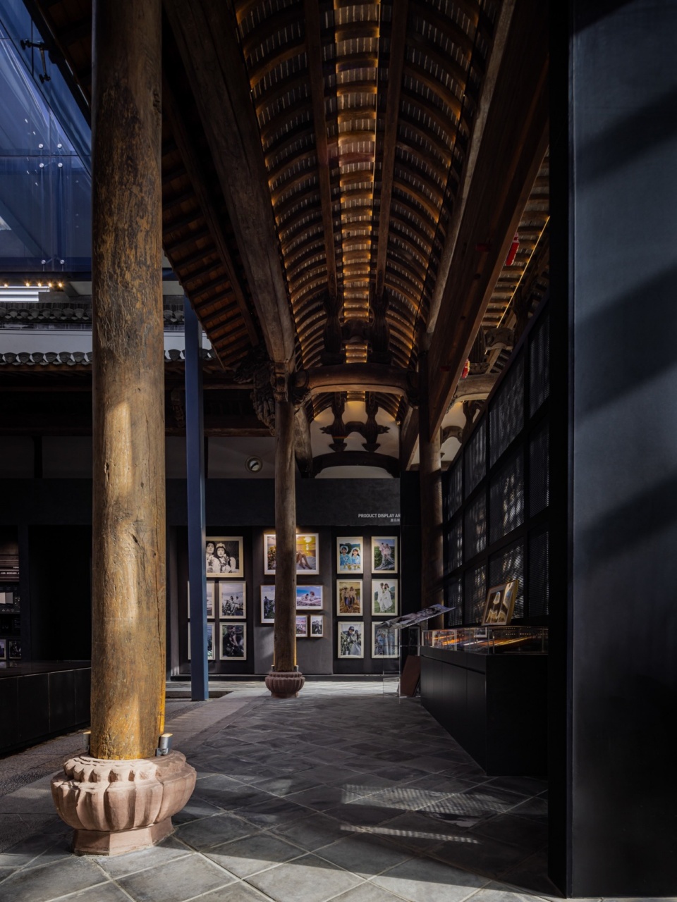 The building structure retains the prototype of Prime Minister Dai Zhide’s early Tang residence. Externally, a protective glass curtain wall encloses the architecture, while internally, stable masonry reinforces the wooden components. The interior equally divides into two zones: a cultural heritage area for ancient architecture and a functional commercial photography space, creating dialogue between historical depth and contemporary engagement.
