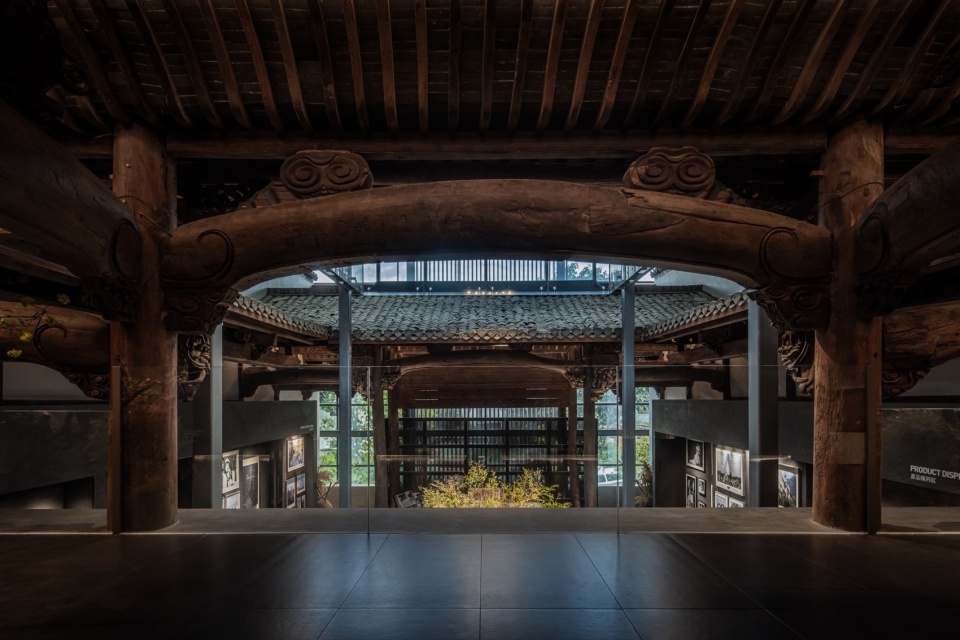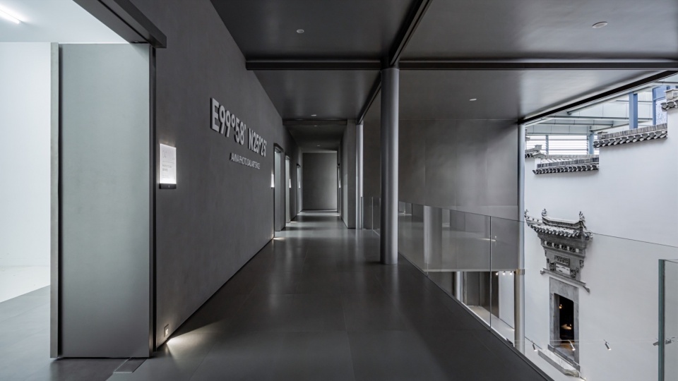 整栋建筑架构在初唐宰相戴至德府邸原型之上,外部建以玻璃幕墙保护设计,内部利用结构稳固的砖石对木质构件加固。内部空间分为古建筑文化区和商业摄影功能区各占一半,让历史底蕴与现代世界在此对话。