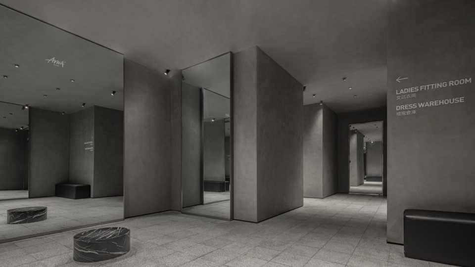 以光为引,步入商业展示区,矮墙围合庭院的手法打通了原有的内部隔墙,整个空间被光线贯通,以轻盈隔断划分功能区,减少实体墙遮挡,使光线可“游走”于空间。让古典与现代、现实与梦幻交相辉映,造就艺术级高定展厅。