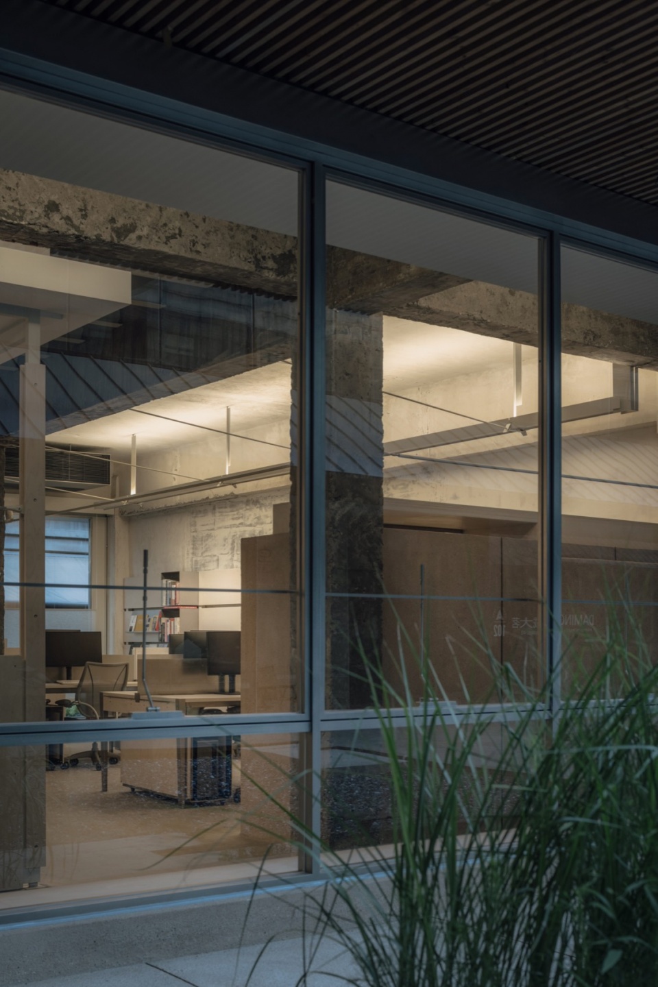 The office is located on the ground floor of the Creative Park, which means that for the first time, we have both indoor and outdoor spaces. Therefore, how to effectively integrate and interact with these spaces became an additional consideration in overall plan layout. We started from the window facade, combining a low platform with low windows and extending it into the outdoor area, where greenery and leisure areas are arranged to create a relaxing office atmosphere to achieve indoor-outdoor permeability.