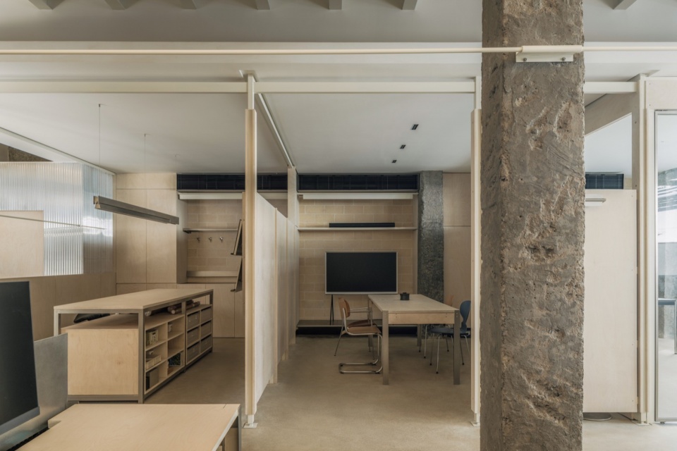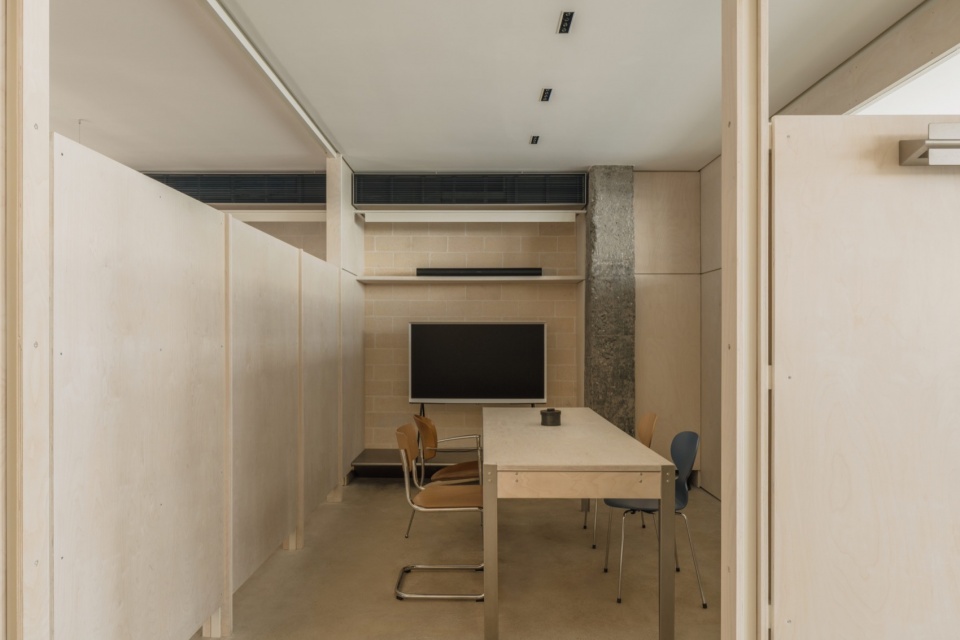 原始空间的粗糙质感被保留,并将新建形体尽量局限于使用功能范围之内。让原始的墙面和裸漏的梁柱以更加开放的视觉形态呈现,形成时间与空间的对话。