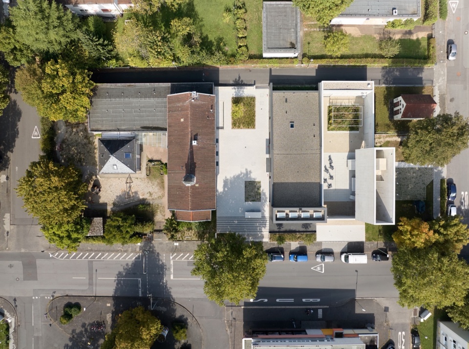 The expansion is work divided up into three sequential zones: the church square, the parish hall, and the outer church. This continues eastwards the existing sequence of childcare facility and church on the west side of the site. To the west the new church square connects the parish hall with the existing church. It is a public square, allowing visitors to the church and parish hall to disperse easily, and encourages social gatherings such as events and festivities. Facing Brunnenweg to the south, the “street altar” opens onto the street and the urban environment, highlighting the ensemble’s ecclesiastical function.