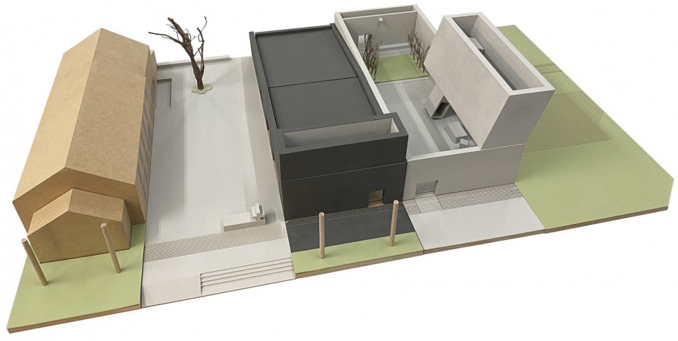 整个场地自西向东依次展开,如同一条时间轴——从最西端的幼儿园和原有教堂开始,延伸至新的教区大厅,再抵达最东侧的户外教堂,从而形成一段“建筑史”。这段历史因户外教堂而保持开放,它作为一个“建造中的中间状态”,呈现出一种开放与封闭之间的模糊性,借助建筑形式体现过程性——是一个充满可能性的空间,以双重意义上的“开放”指向未来。