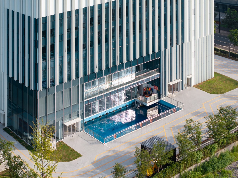 多样化的机器人测试场地以及机器人的运行和测试是申昊研发设施中独具特色的空间元素。设计团队巧妙地利用这一元素,提出以连续抬升的测试场地来组织室内空间,构建了全场景测试体系,从模拟复杂地形的立体轨道、高度还原变电站环境的专业测试舱,到精密控制的水下测试池,为轨道机器人、变电站检测机器人、水下机器人的研发测试提供一站式专业场所。同时打造开阔的开放性场域,为使用者创造更多偶遇与互动的机会。