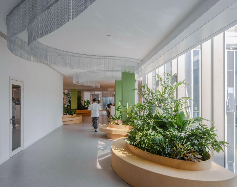 Focused on creating diverse indoor scenarios, the design prioritizes fun in overall spatial design to encourage exploration and communication. The design team strives to introduce outdoor natural environment elements indoors, enriching users’ experiences, stimulating interest in exploring the building, and promoting communication between departments. By creating shared spaces as open as grasslands, the design breaks the monotony of traditional office spaces, allowing employees to work in a comfortable and creative environment and enhancing their work experience.
