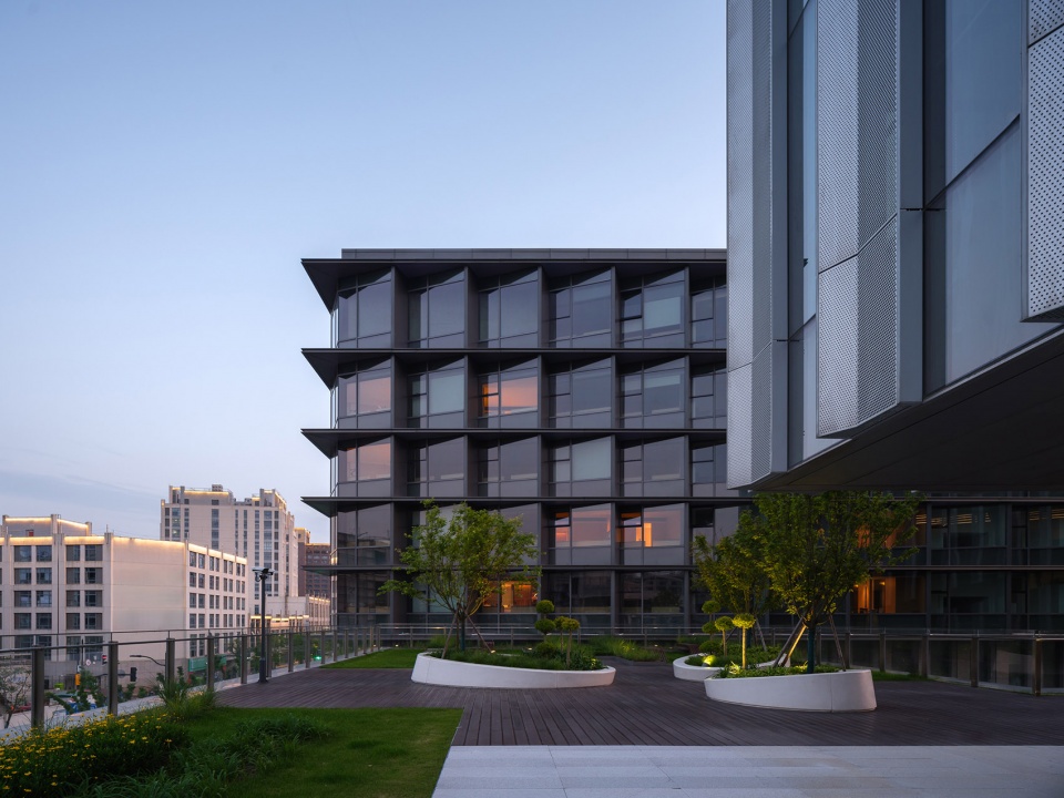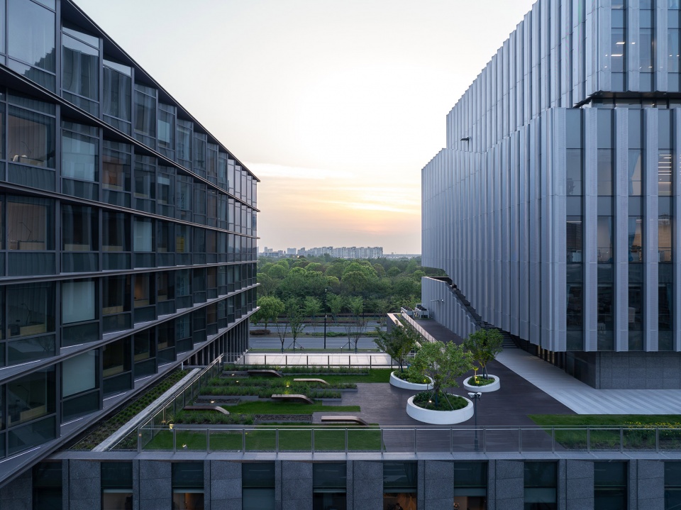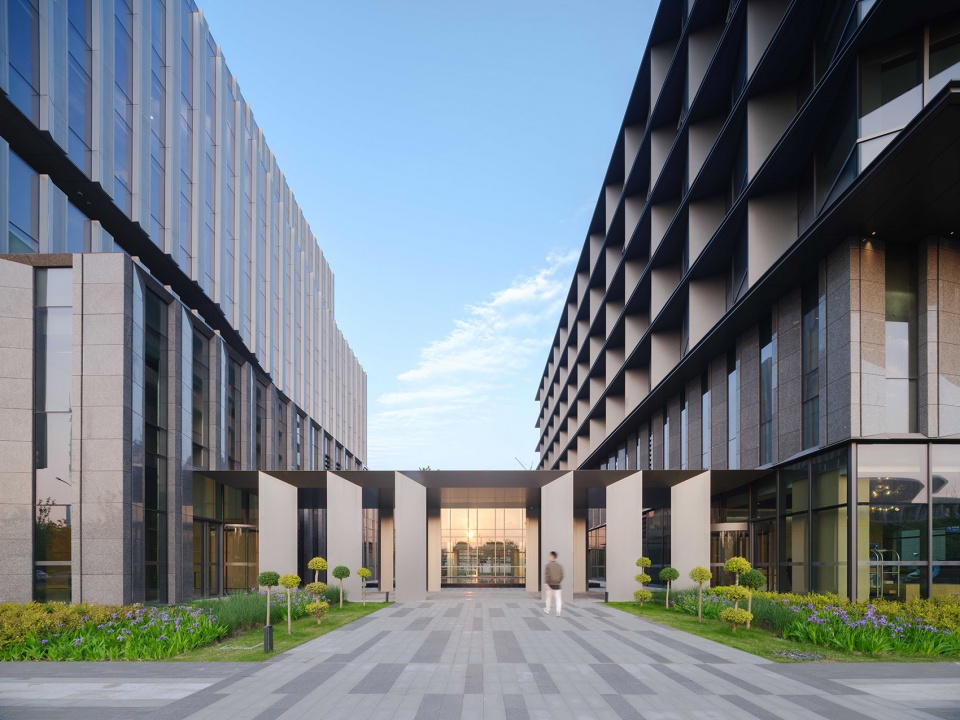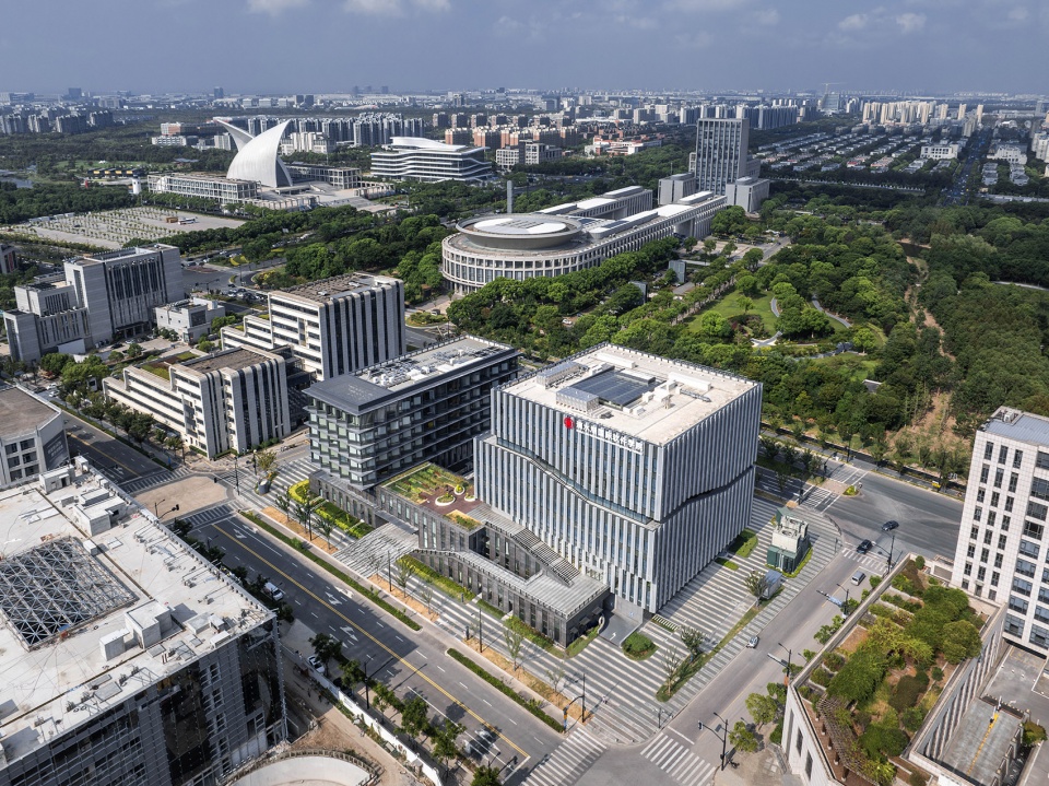 Situated in the core area of Lingang New Area, the campus spans approximately 35,000 square meters and comprises a 9-story academic research hub and a 7-story complex for amenities and a hotel. As the inaugural project of the Lingang Software Park and a key component of the “Dishui Lake AI Innovation Port,” the campus integrates educational, industrial research, and residential functions. Grounded in the master plan of the Lingang New City Phase I, the design responds to the site’s unique characteristics by adopting a human-scaled, courtyard-enclosed layout. This creates an efficient, flexible, and vibrant environment where academic research and collaborative activities naturally thrive.