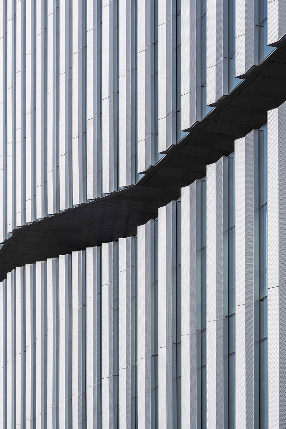 ▼带有穿孔的垂直排布的金属立面,vertical metal fins with perforations