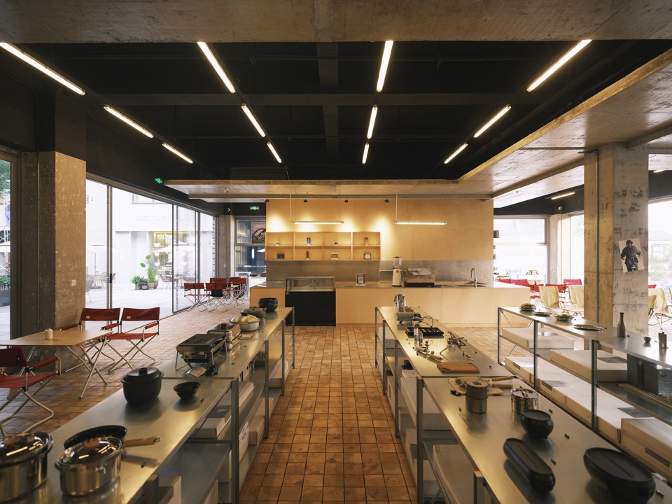 这仍旧是一个纸上谈兵的方案,虽然言之凿凿,却很难说有多少科学性,甚至在两年多的实施过程中都充满了自我怀疑。而当建造终于进入尾声,图纸上的内容站在面前时,物体的真实性给了我们些许信心。吊挂板的强介入赋予了使用者某种依傍,空间不再是空无一物,而是可想象、可创造、可改变的介质。在二层,连廊把分开的单体串接起来,吊挂板在天花中标定出的方向让空间得以飞行,游荡在社区,也滑向远山和溪岸。后疫情时代,我们确实认识到,当初对于使用者的假想出现了一定的偏差,虽然空间的冗余同样能胜任这种变化。如今更适应莫干山多元文化圈模组B的是称为“生活方式店”的商业业态,它通过紧紧抓住客群的消费偏向开拓出不同的销售品类,为它们提供了骨架。无论如何,这是一片试验场,而试验才刚刚开始。