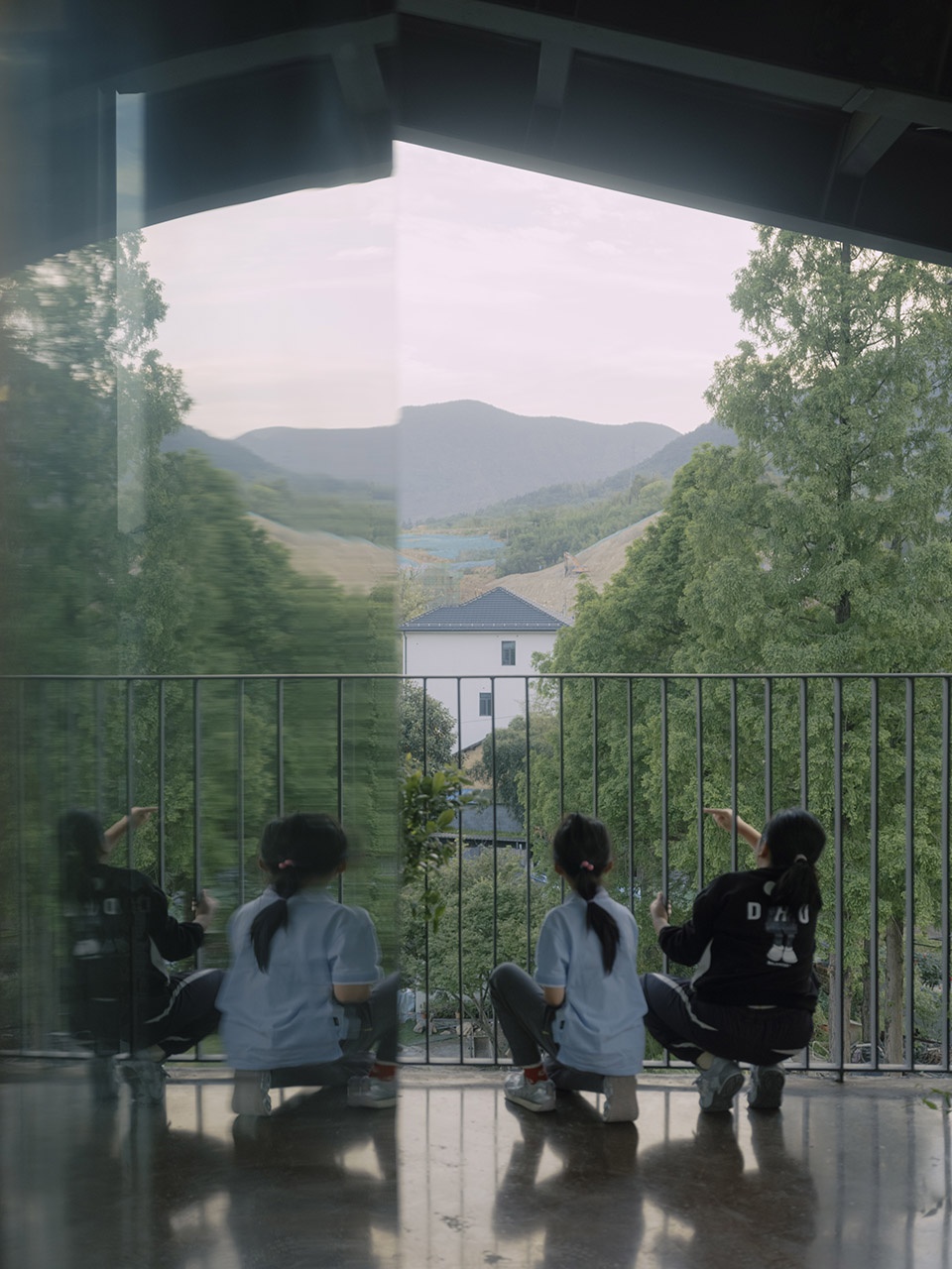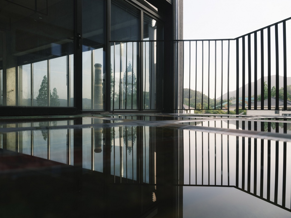 ▼建筑中呈现的远山水影,Shadows of distant mountains and water in the building