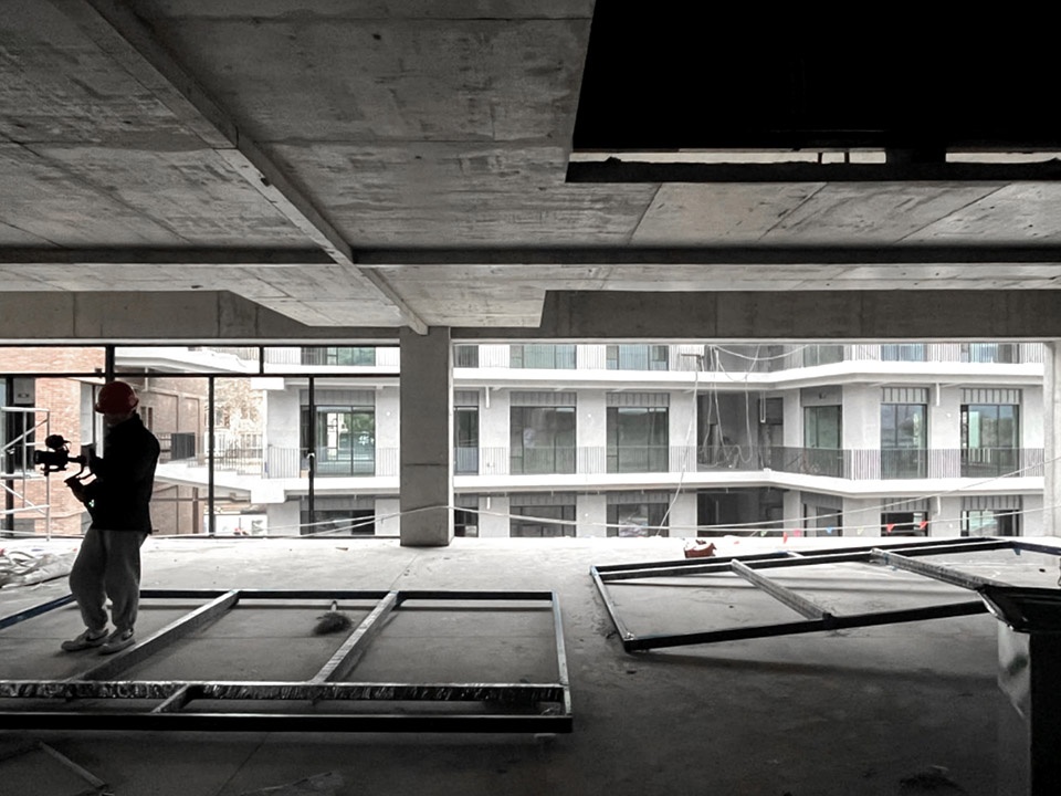 The above description is both a result and a beginning. It is the existing situation we faced when we first intervened in the project: the urban design strategy has already been decided. The entrances and exits of the whole block, the traffic flows, and the functions of the neighbouring buildings as well as the location of public spaces were clearly clarified. Moreover, the volumes, the contours and even the structural form of the buildings to do has been determined by the 8.4-meter-spacing reinforced concrete column network in the underground garage. The urban aspect of the architectural design is therefore primarily concerned with the orientation of the openings and the experience of the neighbourhood, as well as the way in which the building façades and materials shape the image of the neighbourhood. Facing so many restrictions, it is a renovation rather than a new construction project.