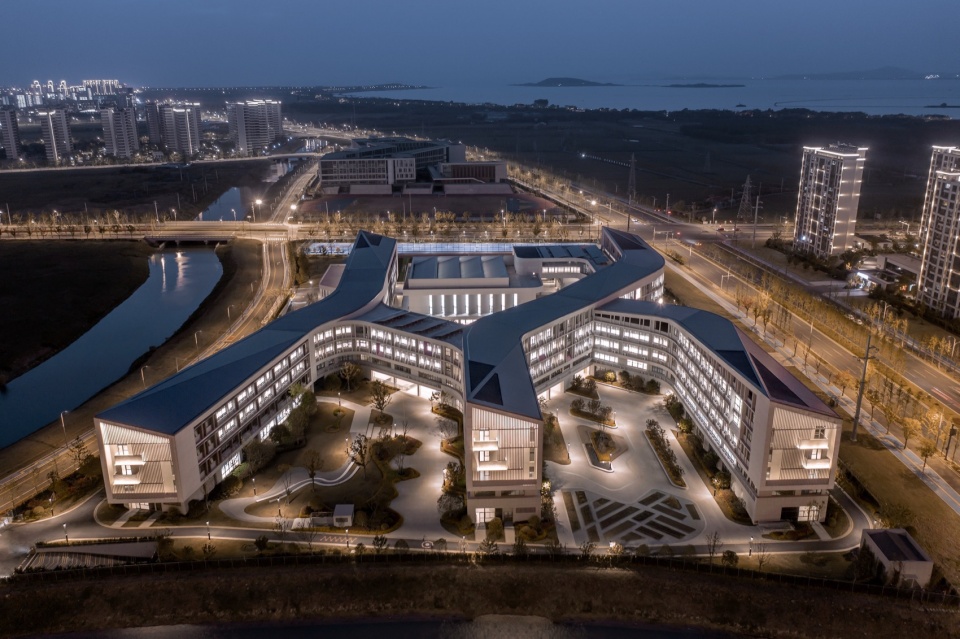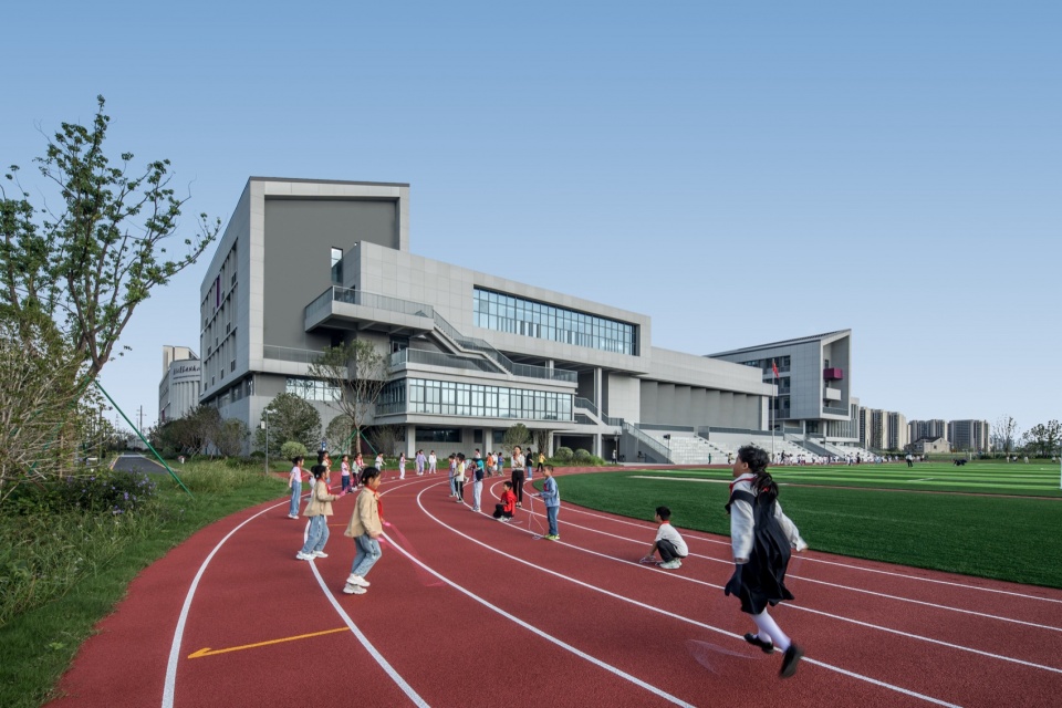 Nanjing University Suzhou Affiliated Primary School is located in the educational core area of Suzhou High tech Zone Science and Technology City. It is a key link in extending the scientific and technological innovation chain and building a research and learning industry hub in the eastern area of Nanjing University. It was officially put into use in September 2024. The base is surrounded by the excellent landscape pattern of ‘the Taihu Lake Lake lies in the west and mountains look east’. The southeast sides are surrounded by two winding rivers, which are rich in natural resources. The unique natural advantage of being located between mountains and waters has led the design to focus on how to abandon the old model of traditional primary schools that overly emphasizes efficiency, and instead create a new type of campus complex that integrates nature, environmental education, openness, inclusiveness, and flexible spatial layout. Multiple green building technologies are used to create a resilient campus that meets the educational needs of the new era.
